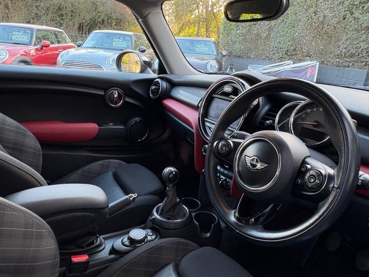 A stylish, well equipped 3 door Mini Cooper 1.5 with upgrade Chili and Media XL packs and further desirable factory specified optional extras. Offered with eight workshop visits recorded, it has one former keeper listed on the V5 registration document. Finished in Blazing Red Metallic with Jet Black roof and mirror caps co-ordinated with Carbon Diamond half leather upholstery. Factory specified options include: Chili pack, Media XL - Mini Professional Navigation - Mini Connected XL - Enhanced preparation for mobile phone, 17'' Cosmos design alloy wheels in gloss black, Front centre armrest, Glowing Red interior colour line, Interior chrome pack, Exterior chrome pack, Sun protection rear glass, Indicators in white. Standard equipment includes: Three spoke sports leather multi-function steering wheel with cruise control (with brake function) speed limiter and remote audio controls, Storage pack, TPMS tyre pressure monitor, Alarm, Immobiliser, Front seat height adjustment, Isofix, Sports seats, Mini Excitement pack, Mini Driving Modes, Rain sensor / auto lights, Dual zone auto climate control air conditioning, Multi-function trip computer, Ambient interior light pack, DAB Visual Boost tuner, Mini Connected, Electric windows, Electric mirrors, Heated door mirrors and washer jets, Remote central locking, Multiple airbags, Front seat passenger airbag de-activation facility, Stop start, Gear change indicator, ULEZ exempt. With attractive specification at a sensible price point this Cooper is worth checking out! We operate by appointment only Monday - Saturday, please telephone or email us to arrange a time; do not arrive unannounced as we might be closed and will not be able to assist you.