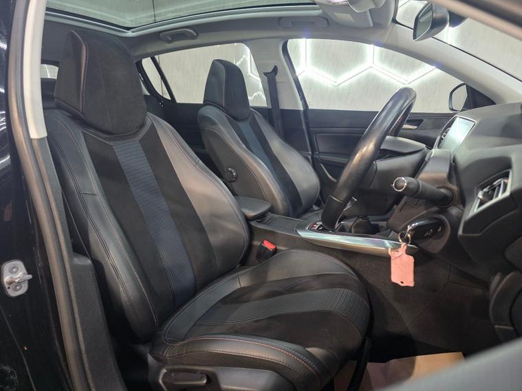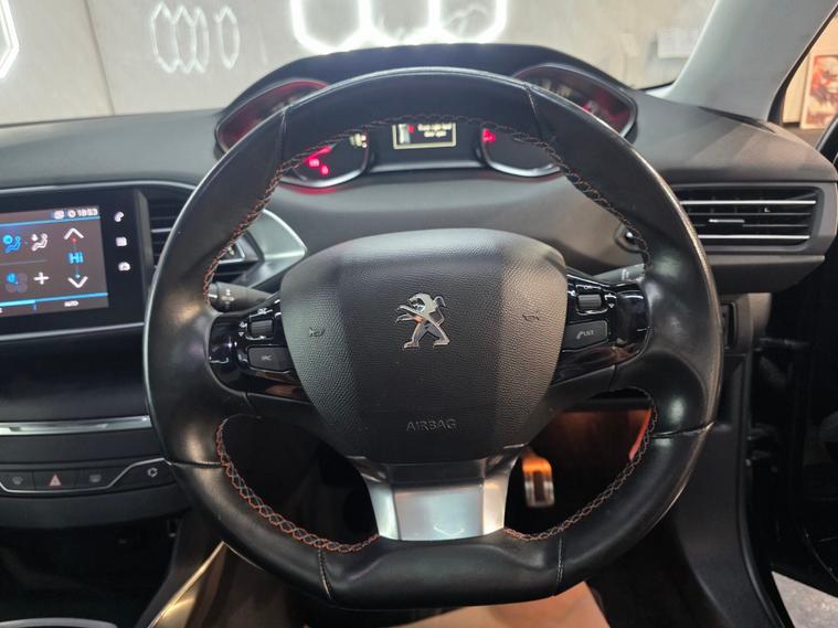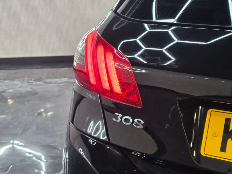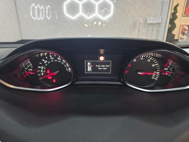 This Peugeot 308 GT Line stands out with 17-inch Rubis diamond-cut alloy wheels, a chrome-trimmed grille, sporty aluminium pedals, and sleek body-coloured details. The dark-tinted rear windows, LED daytime running lights, and the stunning Cielo panoramic glass roof with electric blind elevate the overall design. It also features power-folding mirrors, front and rear parking sensors, and Visio Park 1 with a 180° reversing camera for effortless manoeuvring. Step inside and you’re greeted by the Peugeot i-Cockpit, featuring a 9.7-inch capacitive touchscreen, head-up instrument panel, and a compact multi-function leather steering wheel with stitching detail. Dual-zone automatic climate control, a central sliding armrest, sports front seats, and an ambience of satin chrome accents create a refined driving environment. The 1/3–2/3 split rear seats, rear centre armrest with cupholders, and spacious boot with fixing rings make everyday practicality easy. Entertainment and connectivity include 3D Connected Navigation, DAB digital radio, MP3 compatibility, Mirror Screen smartphone integration, Bluetooth phone and media streaming, plus a USB socket. Advanced driver assistance includes programmable cruise control, blind spot monitoring, City Park enhanced parking assistance, and Peugeot Connect SOS for added peace of mind. Safety is prioritised with adaptive driver and passenger airbags, front side and full-length curtain airbags, ABS with EBD and EBA, Electronic Stability Programme, Lane-keeping and hazard alerts, ISOFIX rear mounts, and rear seatbelt alerts. A Thatcham Category 1 alarm, electronic immobiliser, and automatic locking when driving away further enhance security.