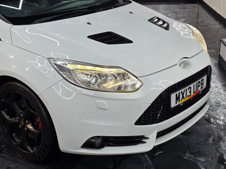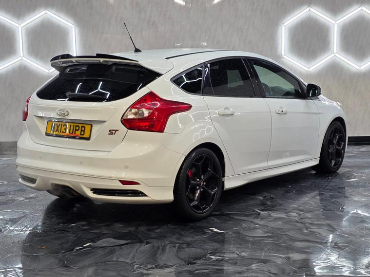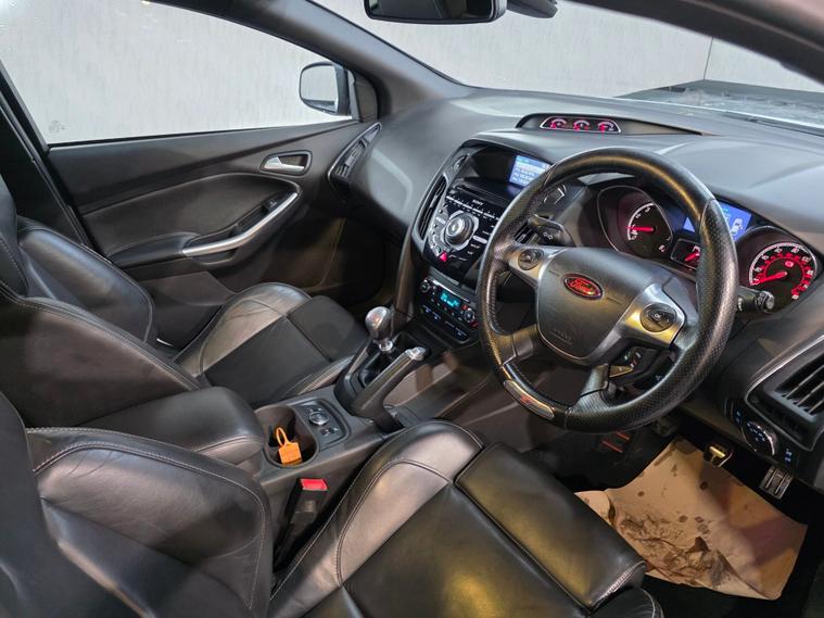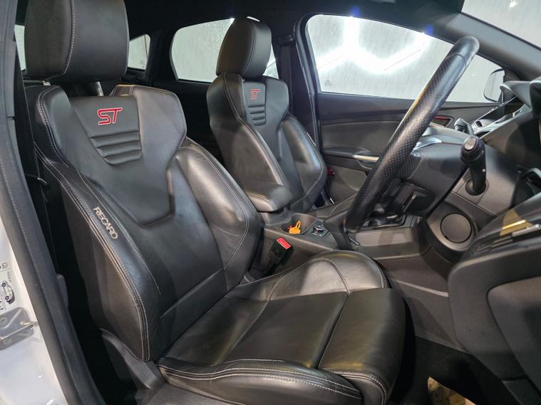 Front & Rear RECARO Seats (Front Heated) Finished with the full ST body styling kit, 18'' alloy wheels, dark-smoke LED rear lights, chrome front grille, body-coloured rear spoiler and side skirts — this ST looks every bit as sporty as it feels. It also benefits from Bi-Xenon headlights, LED daytime running lights, front fog lights, headlight jet wash and heated windscreen & washer jets for all-weather confidence. Inside, you’re treated to stunning full RECARO sports seating front & rear, with the front RECARO seats heated and offering 8-way power adjustment for ultimate comfort. You also get a leather-trimmed ST steering wheel, ST gear knob, ST door scuff plates and Sony DAB radio with Ford SYNC, USB connectivity, voice control, a premium TFT display and dual-zone climate control. Performance and safety highlights include sports-tuned suspension, Torque Vectoring Control, rear parking sensors, ABS, ESP, EBA & EBD, deflation detection, keyless entry with Ford Power Start-Stop button, Thatcham Category 1 alarm, and ISOFIX child seat mounts. Practical touches include multiple 12V power sockets, front & rear electric windows, handy stowage spaces