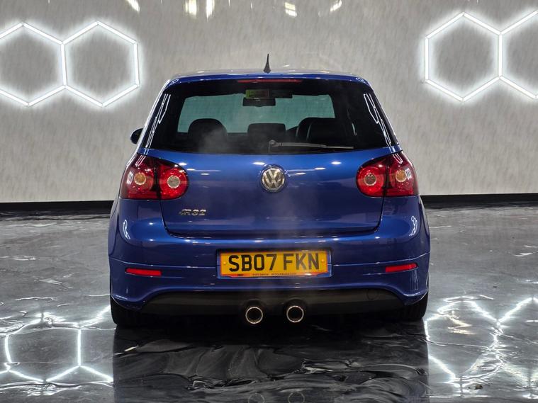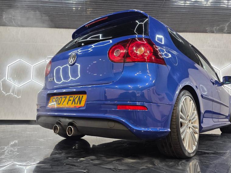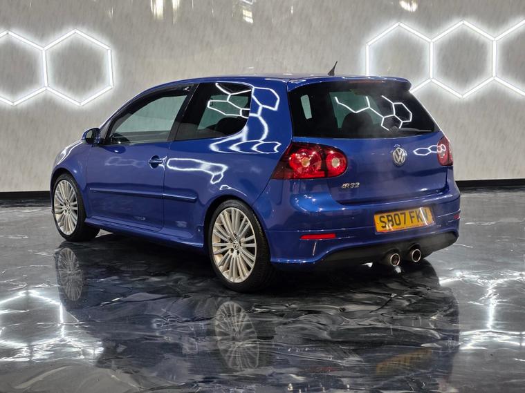 Volkswagen Golf R32 – 3.2L V6 | 2 Keys | This iconic Golf R32 delivers the unmistakable sound and performance of its naturally aspirated 3.2-litre V6, paired with Volkswagen’s 4MOTION all-wheel-drive system for outstanding grip and control. A true modern classic hot hatch. Finished with 18” factory alloy wheels, body-coloured sports bumpers, R32 styling, xenon headlights and twin-exit exhaust — it looks as powerful as it feels. You also benefit from electric heated door mirrors and a rear spoiler for aerodynamic presence. Inside, the R32 provides a refined yet sporty cabin with supportive R-embossed sports seats, brushed aluminium trim, multi-function steering wheel, air conditioning, and a full driver information computer. The famous R32 blue instrument lighting and stainless-steel pedals complete the performance feel. Safety and handling are backed by ESP, ABS, front and side airbags, ISOFIX rear mounting points, and power-assisted steering. Central locking, alarm system and an immobiliser provide peace of mind, while multiple 12V power sockets and good storage make it practical every day.