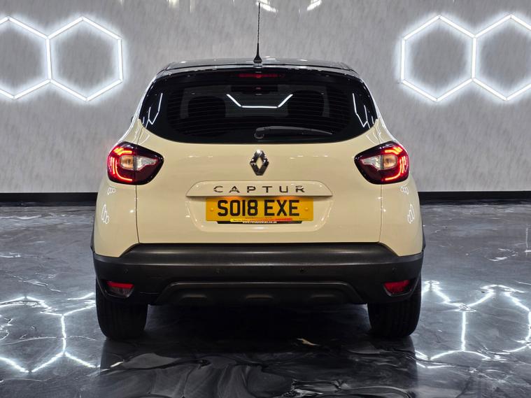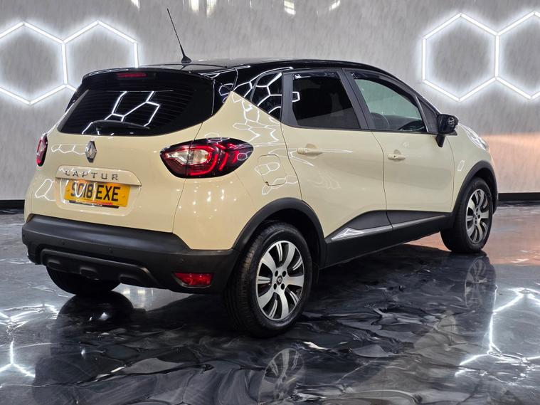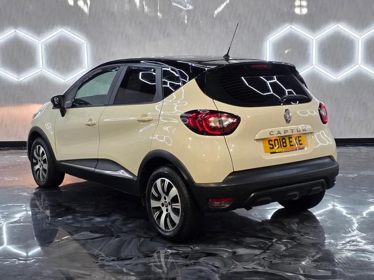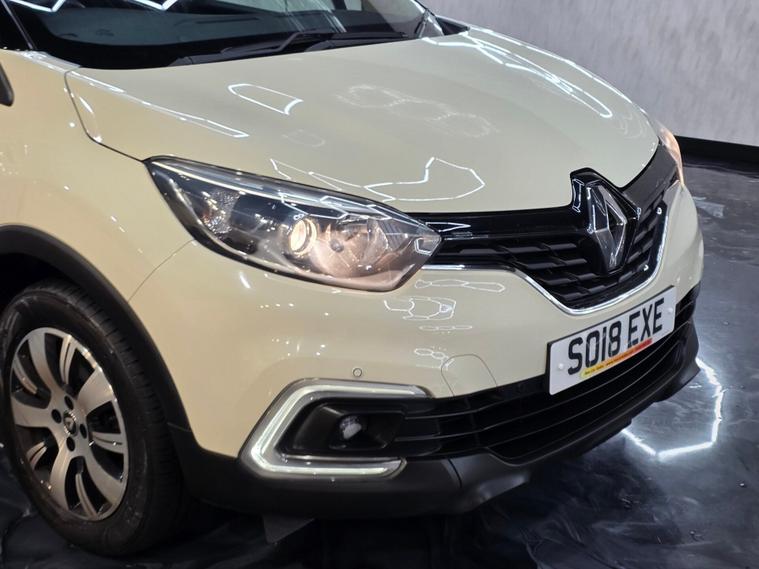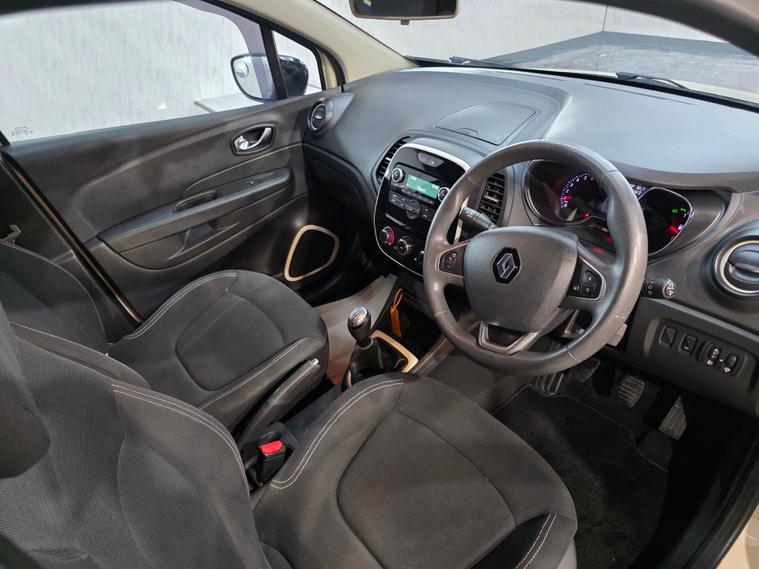 This stylish Renault Captur stands out with its 16'' Adventure alloy wheels with black inserts, metallic diamond black roof, chrome exterior touches, LED daytime running lights (front and rear), LED front fog lights, and front & rear skid plates. It also features automatic headlights, rain-sensing wipers, heated electric door mirrors, lightly tinted windows and body-coloured handles for a premium look. Inside, you benefit from synthetic leather steering wheel, closable dash-top storage, split-level boot floor, split-folding rear seats (60/40), height-adjustable driver’s seat and the latest SRP supportive headrests. Comfort comes from manual air conditioning, pollen filter and Dark Harmony interior styling. Technology includes DAB/FM/AM radio, Bluetooth hands-free and audio streaming, USB and AUX, smartphone cradle and the Renault R&Go app interface for extra connectivity. Cruise control with speed limiter, trip computer and electric windows front & rear add convenience. Safety is covered with ESC, ABS with EBA, Hill Start Assist, ISOFIX front & rear, multiple airbags including lateral head-thorax airbag, deadlocking, Thatcham Cat 2 immobiliser, rear door safety locks, tyre pressure warning and Hands-Free Access with key card + Start button.