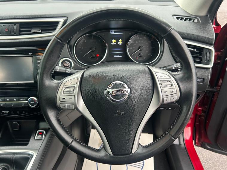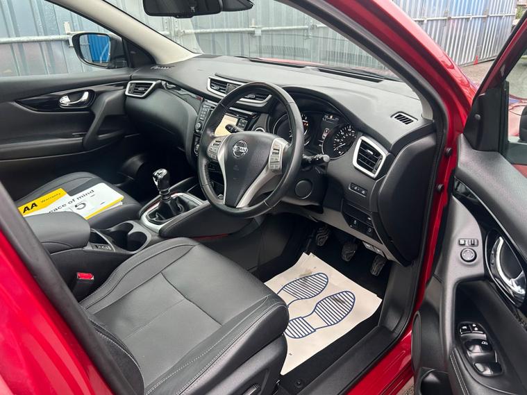 Graham Marsh Car Sales Ltd are delighted to offer this totally superb 2016 (66) Nissan Qashqai 1.5 dCi Tekna SUV 5dr Diesel Manual 2WD Euro 6 (s/s) (110 ps) finished in glorious metallic red with power steering, electric windows, remote central locking, driver and passenger airbags, anti-lock brakes, ESP, alloy wheels, cruise control, AUX/USB/Bluetooth connectivity, satellite navigation, front and rear parking sensors, reversing camera, full leather interior, heated front seats and a panoramic roof, making this a superb MPV with full service history that is ULEZ compliant and costs just £20 per year in road tax