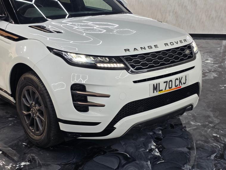 Range Rover Evoque R-Dynamic – 2 Keys | Heated Seats | Rear Camera | LED Headlights This stunning R-Dynamic Evoque comes finished with stylish 17” Satin Dark Grey alloys, flush deployable door handles, body-coloured roof, a tailgate spoiler, and premium R-Dynamic exterior styling. All-season tyres and passive suspension provide a confident, comfortable drive in all conditions. Inside, you get a modern cabin with ambient interior lighting, bright metal pedals, chrome treadplates, 10” Touch Pro display, Apple CarPlay/Android Auto, Bluetooth, DAB radio and a sleek analogue instrument cluster with central TFT screen. The 8-way heated front seats, twin sliding centre armrest, dual-zone climate control and carpet mats add comfort throughout. Loaded with driver assistance features including rear-view camera, front and rear parking aids, cruise control with speed limiter, lane keep assist, driver condition monitor, hill launch assist, and rain-sensing wipers. Safety is enhanced further with multiple airbags, RSC stability control, autonomous emergency braking, ISOFIX, intrusion sensor, and TPMS. Practical touches include a 40/20/40 folding rear seat, rear air vents, heated windscreen and washer jets, heated mirrors, manual tailgate, power child locks, ample cabin storage, and a tyre repair kit. A premium, stylish and well-equipped Evoque ready for its next owner.