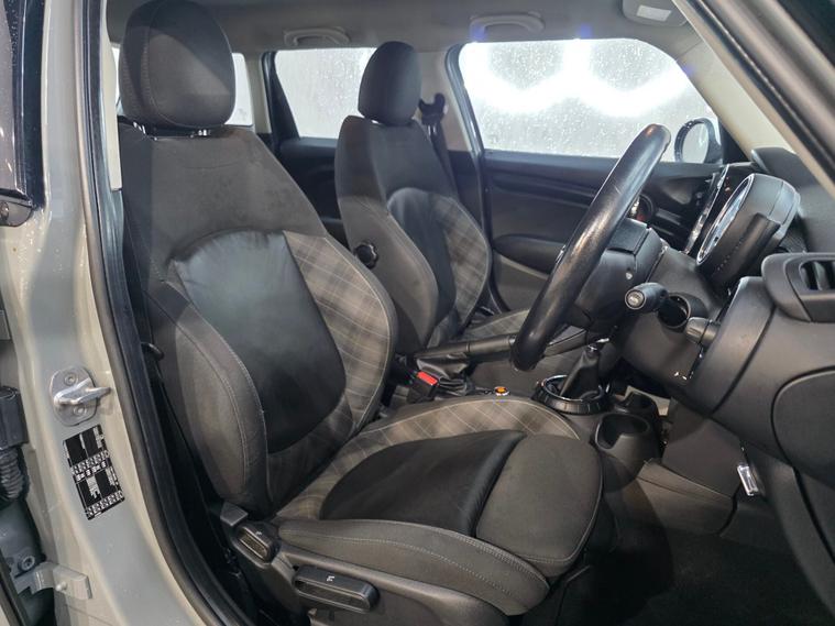This MINI arrives with a stylish specification, including 17-inch Tentacle Spoke alloy wheels, chrome detailing around the headlights and rear lights, halogen/LED lighting, and white roof and mirror caps for that classic MINI look. Finished with body-coloured bumpers, chrome grille, and a high-gloss black tailgate handle, it also features heated mirrors and washer jets, LED daytime running lights, front fog lights, and a roof spoiler painted to match. Inside, the cabin offers automatic dual-zone air conditioning, Diamond Carbon Black cloth/leather upholstery, a MINI Central Display with illuminated ring, the MINI Excitement Pack, and ambient lighting. Comfort and practicality come from features such as 60/40 split folding rear seats, multifunction steering wheel, several storage compartments, mechanical seat height adjustment, and auto-dimming rear-view mirror. The car also includes the MINI Navigation System, DAB radio, Bluetooth hands-free with USB audio, Visual Boost radio, and steering-column-mounted audio controls. Safety and driving technology are strong points too, with ABS, DSC, DTC with electronic differential lock, six airbags, ISOFIX, tyre pressure monitoring, intelligent emergency calling (E-Call), rain-sensing wipers, automatic headlights, cruise control with brake function, and MINI Driving Modes to tailor your drive. Heated rear window, follow-me-home headlights, brake force display, and a full alarm/immobiliser system further add to convenience and security.