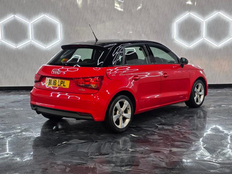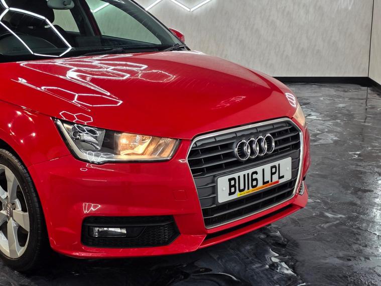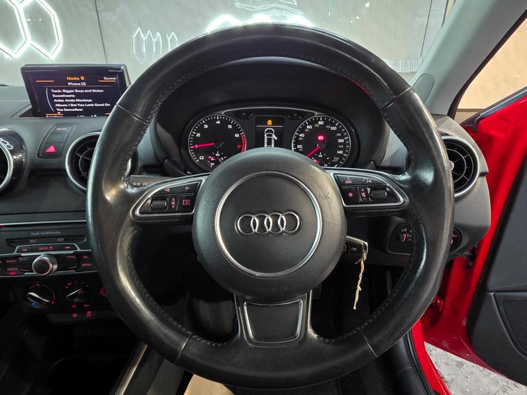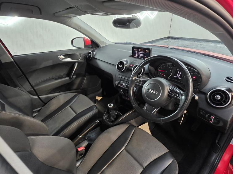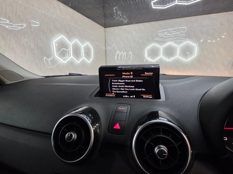 Now this Audi comes with 16” 5-spoke sport alloy wheels, body-coloured heated and electrically adjustable door mirrors, daytime running lights, front fog lights, halogen headlights, polished tailpipes, heat-insulating glass, heated rear windscreen, split-folding rear seats, tyre repair kit and locking wheel bolts. Air conditioning, front sports seats with manual height adjustment and lumbar support, leather multi-function sports steering wheel (height & reach adjustable), leather sports gear knob, aluminium interior trim, high-gloss black dashboard accents, front & rear electric windows, front floor mats, illuminated glovebox, cup holders, ISOFIX rear seats and a non-smoking package. ABS, ESP, ASR, EBD, EDL, tyre pressure monitoring, multiple airbags, Thatcham Cat 1 alarm & immobiliser, remote central locking, secondary collision brake assist, driver information system, electromechanical power steering, DAB radio, Bluetooth audio & phone prep, Audi Music Interface, AUX/USB inputs, SD card readers, voice control, satellite navigation preparation and a 12V power socket.