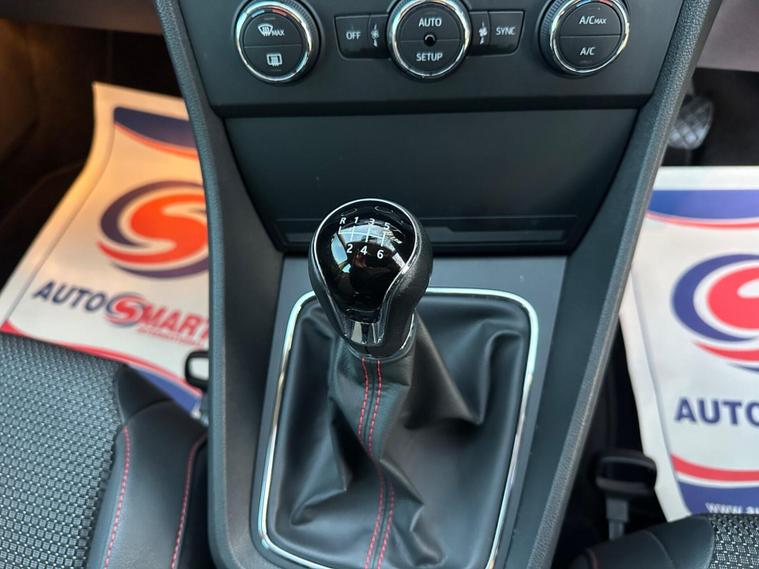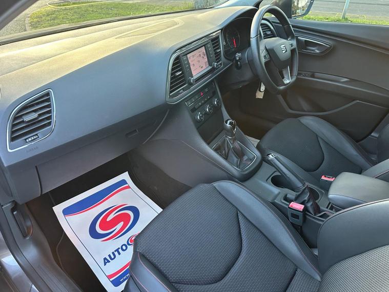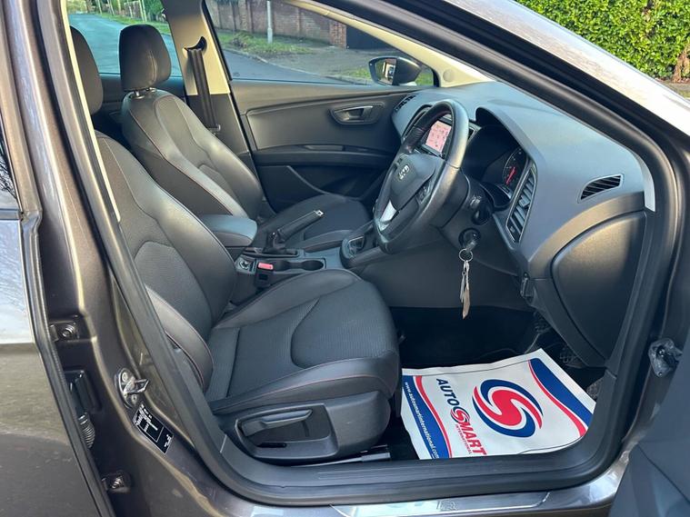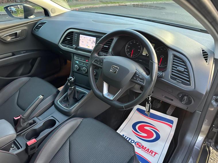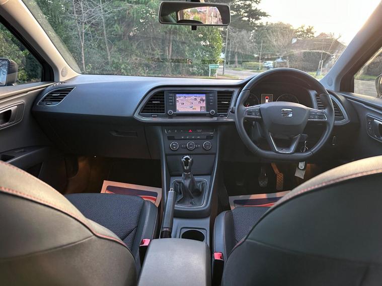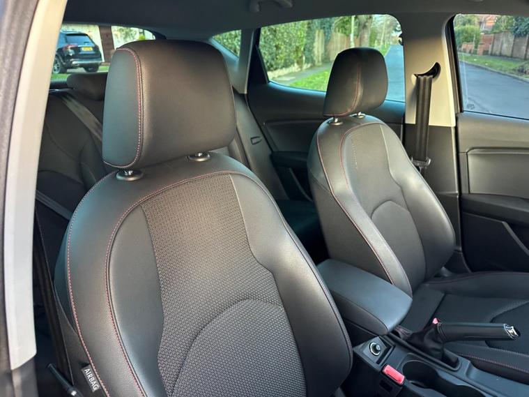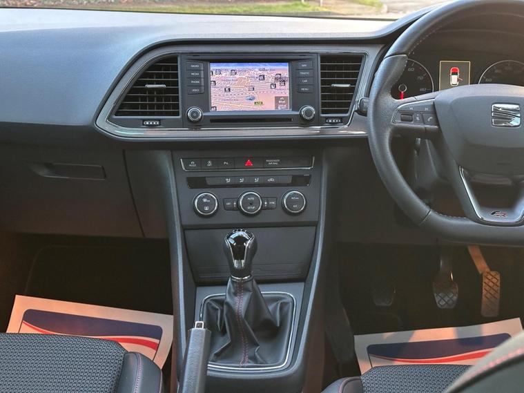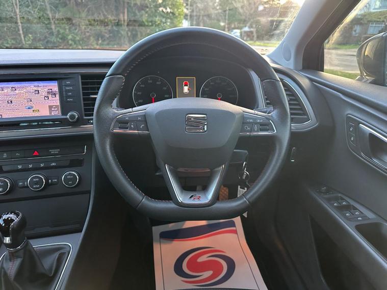 - Steering Wheel - Flat-Bottomed Perforated Leather with Red Stitching and FR Logo