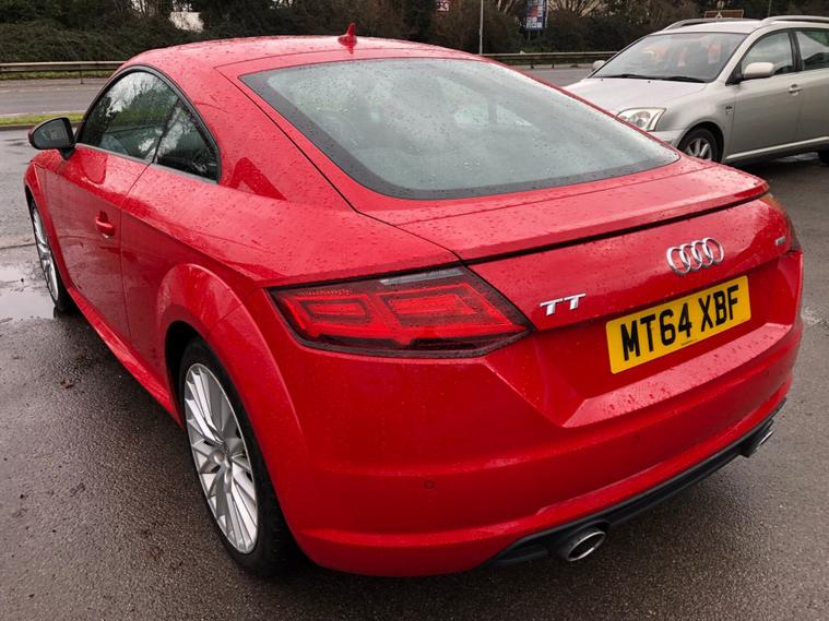 Here we have a desirable 2 owner late 2014 Audi TT 2.0 TDI Sport Ultra diesel 6 speed manual featured in Tango red metallic which has covered 78, 000 miles. Serviced only by Audi main dealers at 10, 000, 18, 000, 25, 000, 31, 000, 43, 000, 65, 000 miles. The car will come with a new mot and a service for the next owner. Specification includes Technology Package featuring Audi Connect, Bang & Olufsen sound system, Super Sports seats in Fine Nappa leather, DAB radio, rear parking sensors, Heated front seats, LED interior lighting package, Electric lumbar support, Sat Nav, Front centre armrest, hill hold assist, airconditioning, Bi-Xenon headlights with ellipsoidal lenses, keyless start, bluetooth phone and audio, collision warning, remote central locking with 2 keys, day time running lights, electric windows, isofix, Single 12.3 inch multi-function display screen(s), sports multifunctional steering wheel, digital dash, flatfolding rear seats and 18 inch alloy wheels. Very economical to run with just £20 annual road tax and 67.2 mpg combined fuel consumption. Euro 6 engine so is ULEZ compliant. In good condition inside and out for the age and mileage; drives well. Overall if you are looking for a sporty, well specified coupe which is ULEZ compliant and economical to run this is well worth coming in to see. All of our cars come with a national parts and labour warranty. We also offer finance and a part exchange service. HPI checked and we do not charge admin fees. To find out more visit dealer's website or call us on 01243502431.