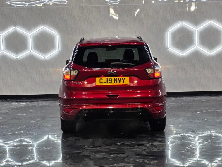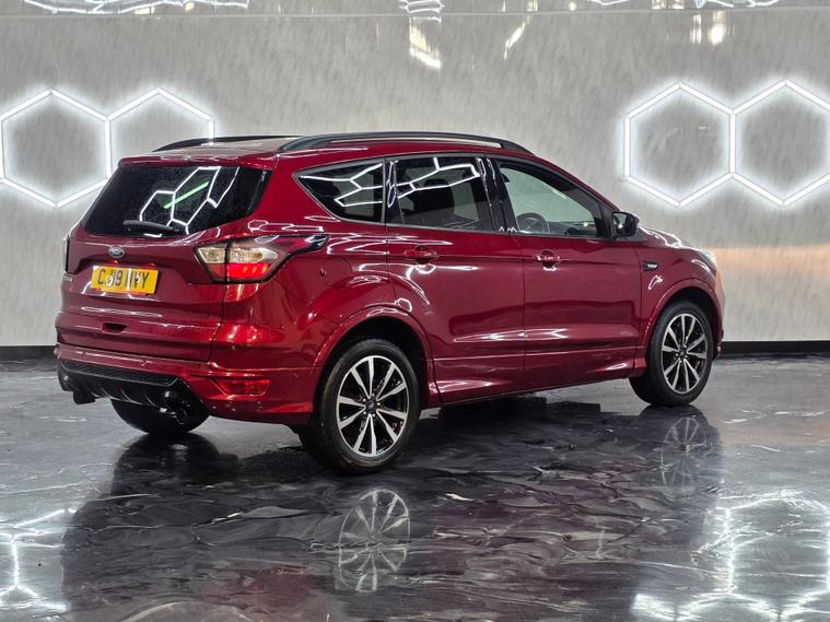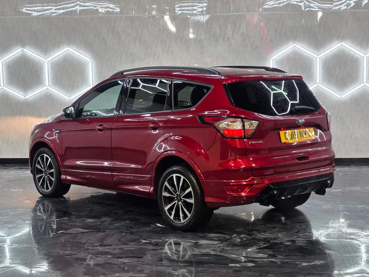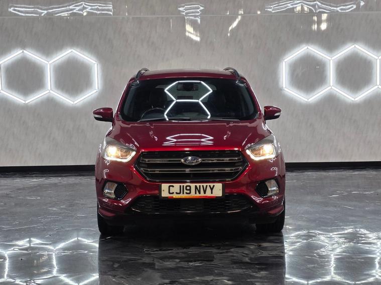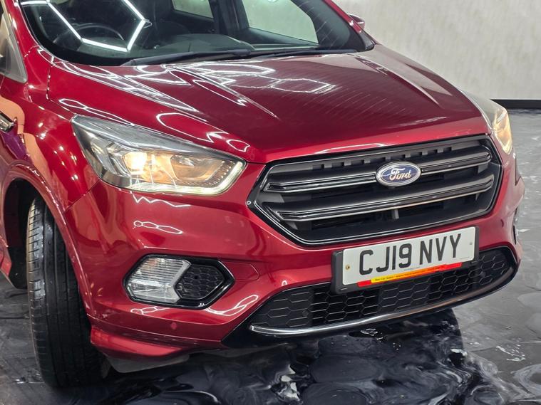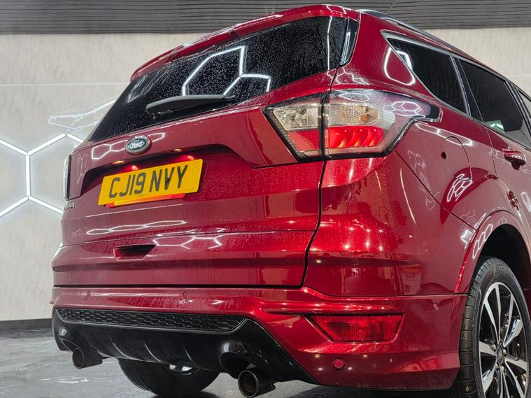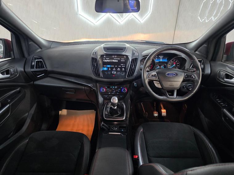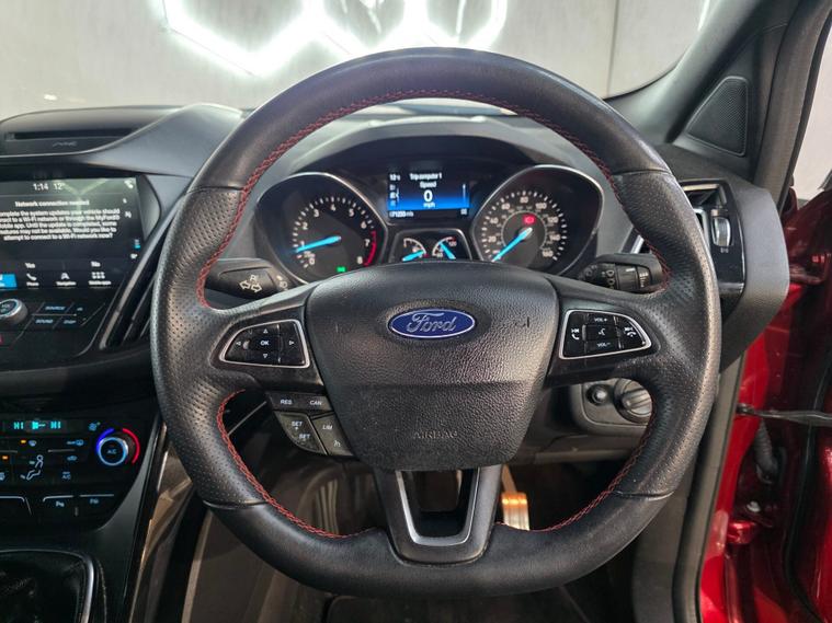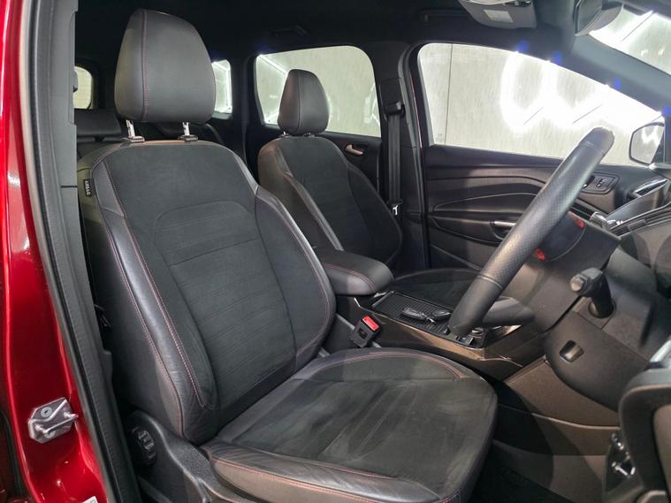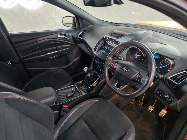 Finished in stunning Italian Racing Red, this eye-catching example really stands out from the crowd. Sitting on 18-inch Absolute Black machined alloy wheels with a full body styling kit, black roof rails, rear privacy glass and dual exhaust, it has a sharp, aggressive presence that perfectly matches its sporty character. Supplied with 2 keys, this is a fantastic-looking vehicle with real road appeal. Inside, the cabin continues the sporty theme with red-stitched flat-bottom leather steering wheel, alloy pedals, red-stitched floor mats and dark headliner, giving it a premium yet performance-focused feel. It comes well equipped with Ford SYNC3 navigation with DAB, dual-zone climate control, cruise control with speed limiter, rear parking sensors, keyless entry and start, heated Quickclear windscreen and enhanced active park assist. The 60/40 split-folding rear seats with recline function make it practical as well as stylish. Safety and driver assistance are strong throughout, including ABS with ESC, emergency brake assist, multiple airbags, ISOFIX points, Thatcham alarm and tyre pressure monitoring. With sports suspension and sharp styling to match, this is a superb all-rounder that delivers comfort, technology and performance-inspired looks in one complete package.
