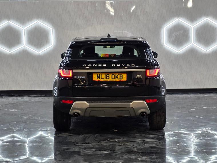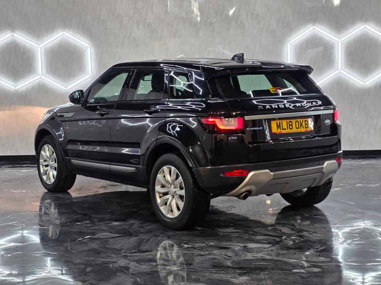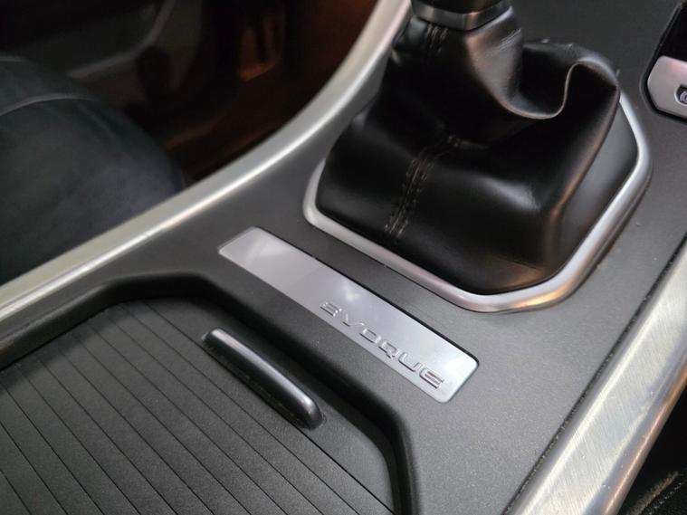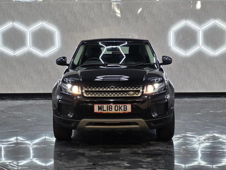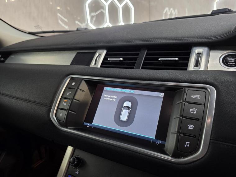 18'' 5 split-spoke Style 506 alloy wheels in sparkle silver, body-coloured bumpers, door handles and roof with matching rear spoiler, Brunel and anthracite exterior detailing, Narvik Black grille and fog light surrounds, Evoque blue badging, halogen headlights, rain-sensing wipers, manual tailgate, locking wheel nuts and front & rear parking sensors. 8-way electric front seat adjustment with heated front seats, automatic climate control with air filtration and rear vents, ambient interior lighting, anthracite lower door claddings, carpet mats with edging, rear centre armrest, 60:40 split rear bench with centre head restraint, Windsor leather steering wheel with audio and cruise controls, and satin brushed aluminium interior trim. 8'' high-resolution touchscreen with InControl Touch, DAB radio, Bluetooth audio & phone connectivity, Land Rover 8-speaker sound system, InControl Protect, USB connectivity, autonomous emergency braking, lane departure warning, ABS, DSC, EBD, EBA, EPAS, traction & roll stability control, hill start assist, tyre pressure monitoring, volumetric alarm and a full suite of airbags including driver knee and side curtain protection.