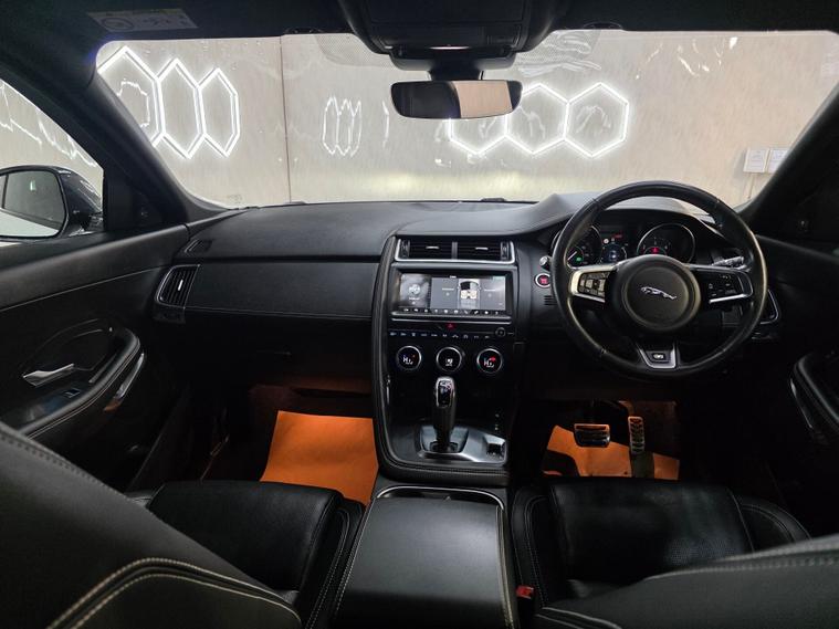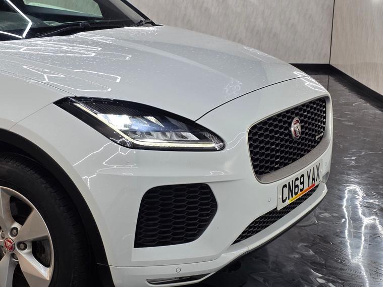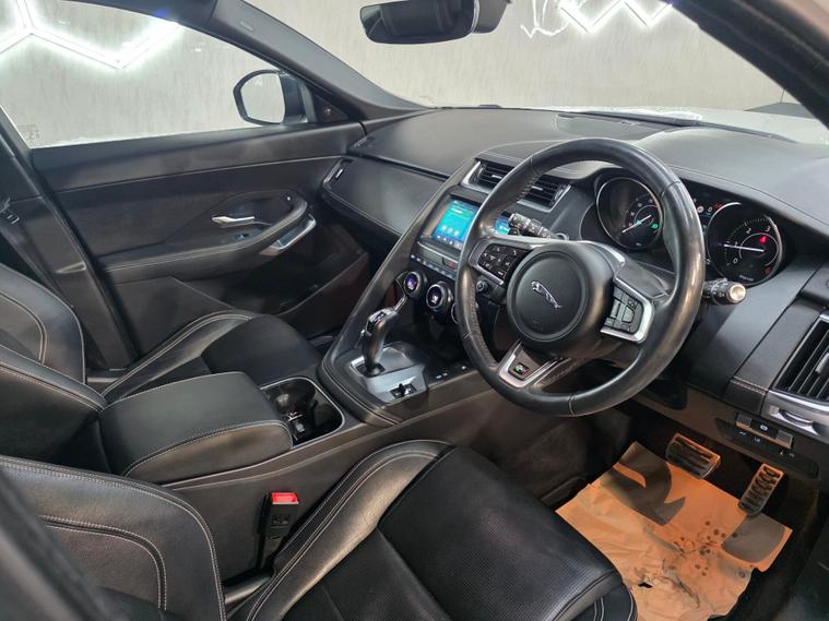 Comes with 2 keys and sat at a low mileage and 18” 5-spoke Style 5048 alloy wheels in gloss sparkle silver, R-Dynamic body-coloured bumpers, gloss black grille with satin chrome surround, satin black window surrounds, satin chrome side vents, LED headlights with signature daytime running lights, front fog lights, heated front windscreen, heated washer jets, heated rear window, approach illumination, rear spoiler, twin tailpipes with finishers, locking wheel nuts and summer tyres. 10-way heated electric front seats, 2-zone climate control, Ebony Morzine headlining, R-Dynamic leather steering wheel with black gearshift paddles, bright metal pedals, centre console with armrest, carpet mats, rear air vents, 60:40 split-fold rear seats with centre headrest, interior ambient lighting, illuminated vanity mirrors, overhead lighting console and generous loadspace with cover, nets, hooks and lighting. 10” Touch Pro infotainment with Navigation Pro, Apple CarPlay & Android Auto, DAB/AM-FM radio, Bluetooth, Pro Services with Wi-Fi hotspot, 125W sound system, rear view camera, front & rear parking aids, cruise control with speed limiter, JaguarDrive Control, all-surface progress control, dynamic stability control, emergency braking, lane keep assist, traffic sign recognition with adaptive speed limiter, torque vectoring by braking, tyre pressure monitoring, electric parking brake, keyless push-button start and a full suite of airbags and safety systems.