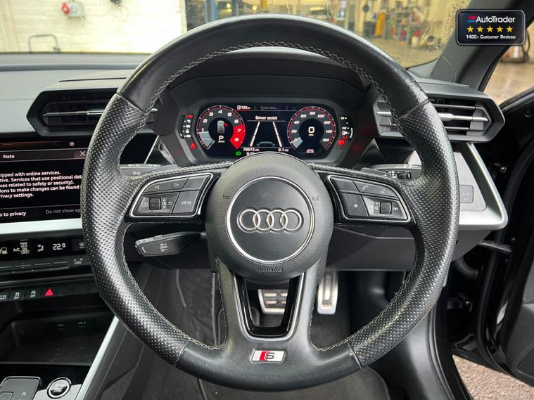 Anchor Cars Tadley is proud to present this 2021 Audi A3 1.5 TFSI 35 S line Sportback S Tronic, a sleek and dynamic hatchback that seamlessly blends everyday practicality with unmistakable premium appeal. Finished in sophisticated black, this 5-door model features the striking S line styling, delivering a bold presence and enhanced sporty details that elevate its visual charm. Powered by a responsive 1.5-litre petrol engine paired with a smooth S Tronic automatic transmission, this Audi A3 delivers 150 PS for a confident and refined driving experience. Whether navigating urban roads or cruising on the motorway, its efficient performance and composed handling make it an ideal companion for both short trips and longer journeys. Inside, the Sportback body ensures generous cabin space and everyday versatility, while the premium trim and thoughtful layout make every drive comfortable and enjoyable. With five doors and a practical hatchback design, it’s perfectly suited to professionals and small families alike. To arrange a viewing, contact Anchor Cars Tadley on 01183443112 or visit dealer's website