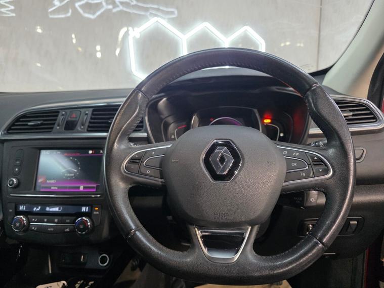 2 KEYS, 1 previous owner Exterior & Styling: 19” diamond-cut Apollo alloy wheels, chrome detailing with chrome window surrounds, extra-tinted rear windows and tailgate glass, LED daytime running lights, halogen headlights, fog lights with cornering function, roof rails, body-coloured door handles and mirrors, electrically folding heated mirrors, multi-position boot floor, full flat floor, rear heated windscreen, towing rings front & rear and elegant chrome side mouldings. Interior & Comfort: Automatic dual-zone climate control, climate & convenience packs, front centre armrest, adjustable dashboard illumination, 7” TFT digital driver display, leather steering wheel (rake & reach adjustable), cruise control with speed limiter, driver seat height & lumbar adjustment, passenger height-adjustable seat, 60:40 split folding rear seats with one-touch folding, multi-position boot floor, rear passenger heating ducts, interior courtesy lighting, pollen filter and a refined, spacious cabin layout. Technology, Safety & Connectivity: R-Link v2 satellite navigation, Apple CarPlay & Android Auto, Arkamys 3D sound system (DAB, Bluetooth, USB), front & rear parking sensors, digital speedometer, hands-free keycard entry, electronic parking brake, ABS with EBD & emergency brake assist, ESP with ASR & understeer control, hill start assist, tyre pressure monitoring, Visio system, Category 1 alarm & immobiliser, RAID anti-intruder system, multiple airbags (front, side, curtain), ISOFIX child seat points and a full suite of Renault safety systems.