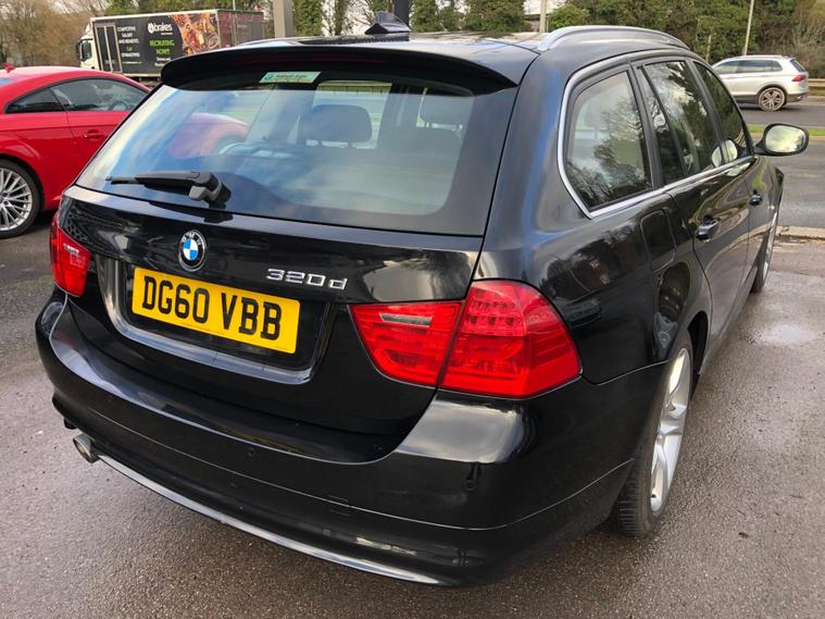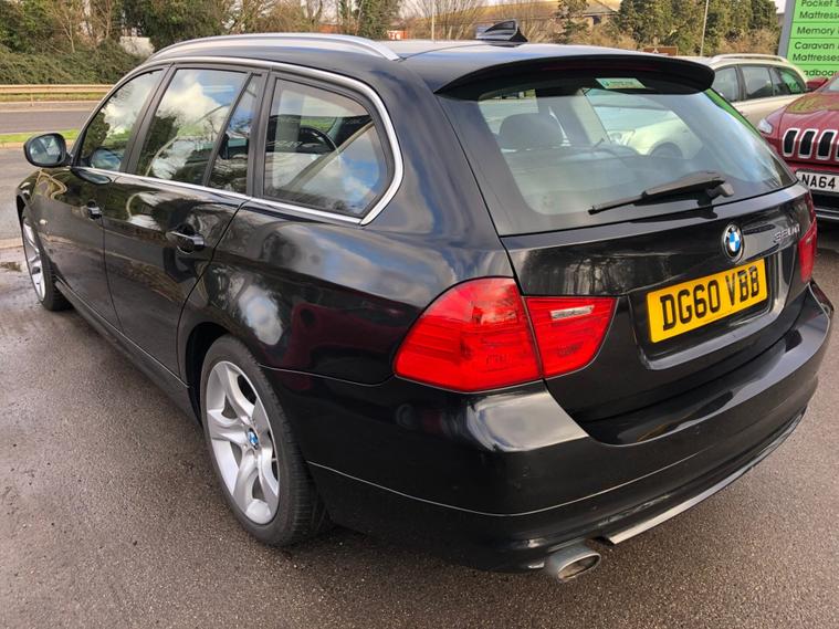 Here we have a well specified and low mileage mid 2010 2 owner BMW 320D EXCLUSIVE EDITION TOURING automatic diesel featured in Black Sapphire metallic which has covered just 77, 000 miles. Good service history with 8 entries- 15, 000, 25, 000, 32, 000, 35, 000, 43, 000, 55, 000, 64, 000 and 72, 000 miles. Specification includes folding electric mirrors, front centre armrest, front fog lights, rear child isofix, full leather seats, Radio CD with AUX connectivity, leather multifunctional steering wheel, front and rear parking sensors, climate controlled airconditioning, electric folding mirrors, 17 inch alloy wheels, airconditioning, Satin Aluminium roof rails, rear parking sensors. In good condition inside and out; drives well. Overall if you are looking for a low mileage automatic diesel estate with a good service history it is well worth coming in to see. All of our cars come with a national parts and labour warranty. We also offer finance and a part exchange service. HPI checked and we do not charge admin fees. To find out more visit dealer's website or call us on 01243502431.