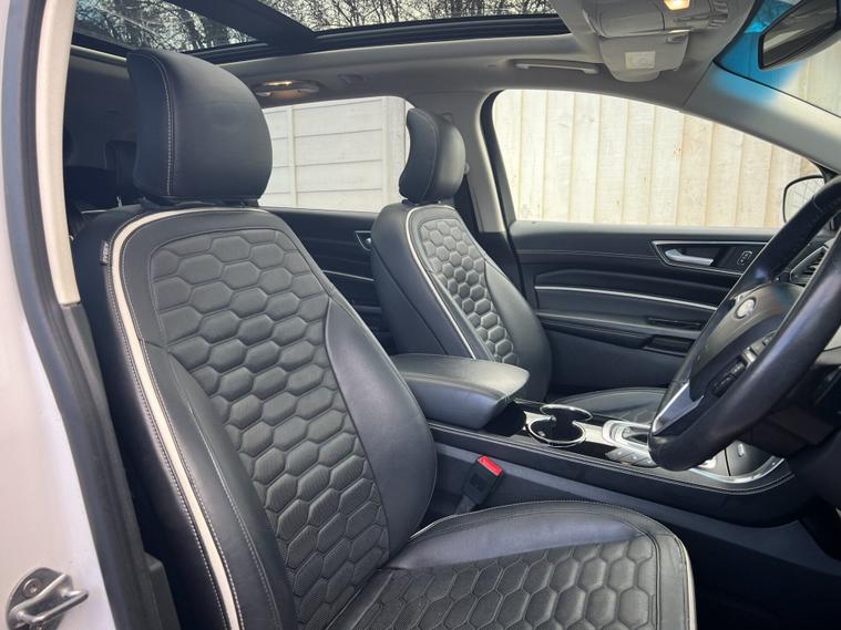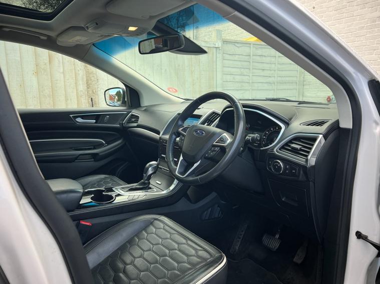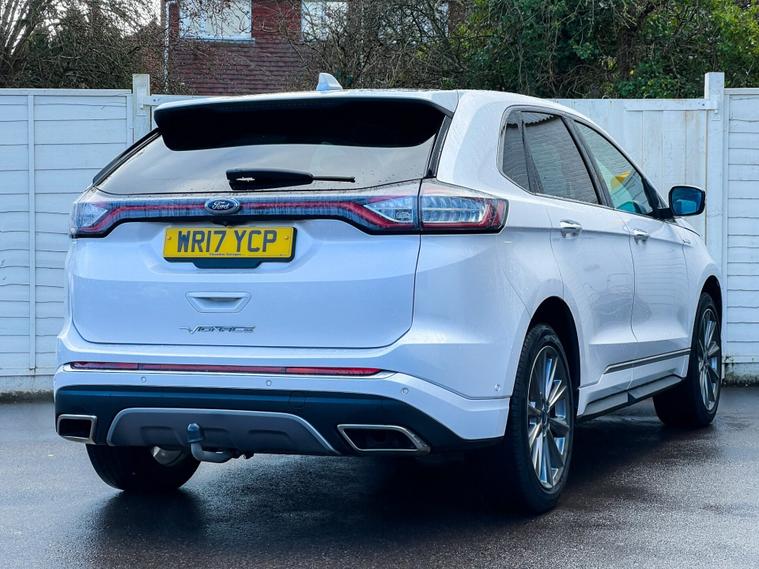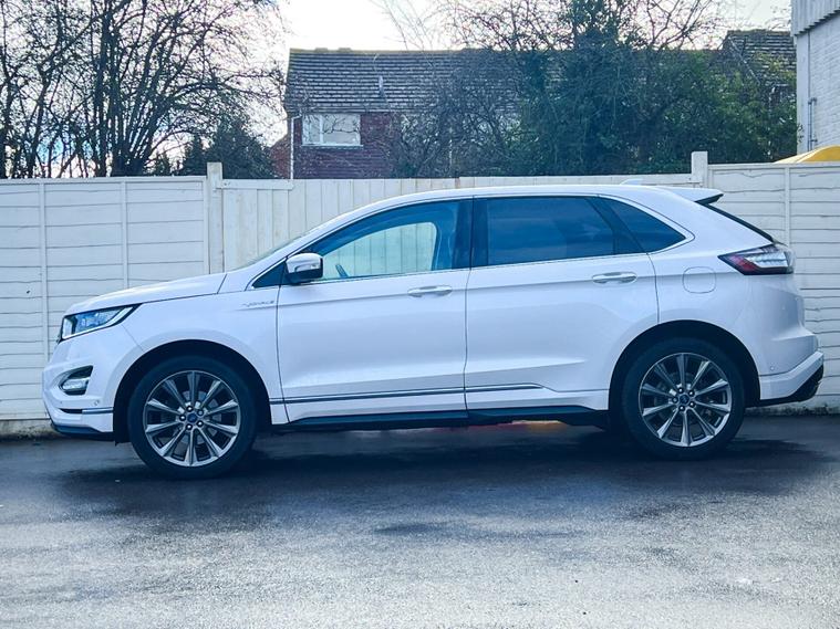 LUXURY 2017 FORD EDGE 2.0 TDCI VIGNALE AWD AUTOMATIC. This is your chance to own the ultimate expression of Ford luxury. We are thrilled to present this top of the range Ford Edge Vignale, registration WR17 YCP, finished in a pristine White with a sumptuous Leather interior. As a Vignale model, this SUV sits at the very pinnacle of the lineup, offering superior refinement, hand finished detailing, and a road presence that is second to none. Powered by the potent 210 PS 2.0 litre diesel engine and paired with the smooth Powershift automatic gearbox, it delivers effortless performance. The Intelligent All Wheel Drive system ensures you have maximum grip and confidence in all weather conditions. With just 43, 434 miles on the clock, this vehicle is a fantastic example of a premium SUV. It is fully Euro 6 compliant, making it ULEZ ready for city driving without the extra charges. The cabin is a haven of quiet comfort, packed with high end technology and wrapped in premium materials that make every journey feel special. Premium SUVs of this specification and condition are highly sought after. Do not miss the opportunity to drive away in this flagship model. Call Anchor Cars Tadley today on 01183443112 to arrange your exclusive viewing and test drive.