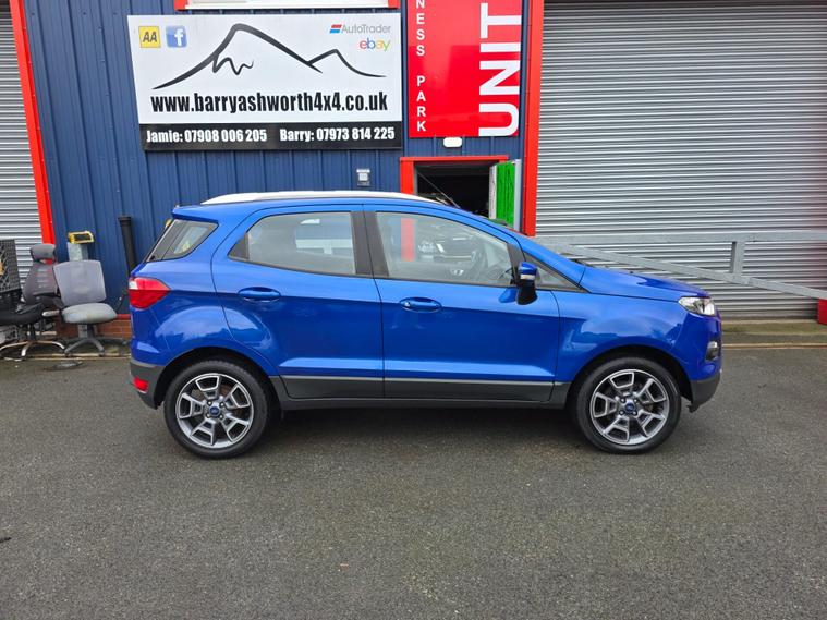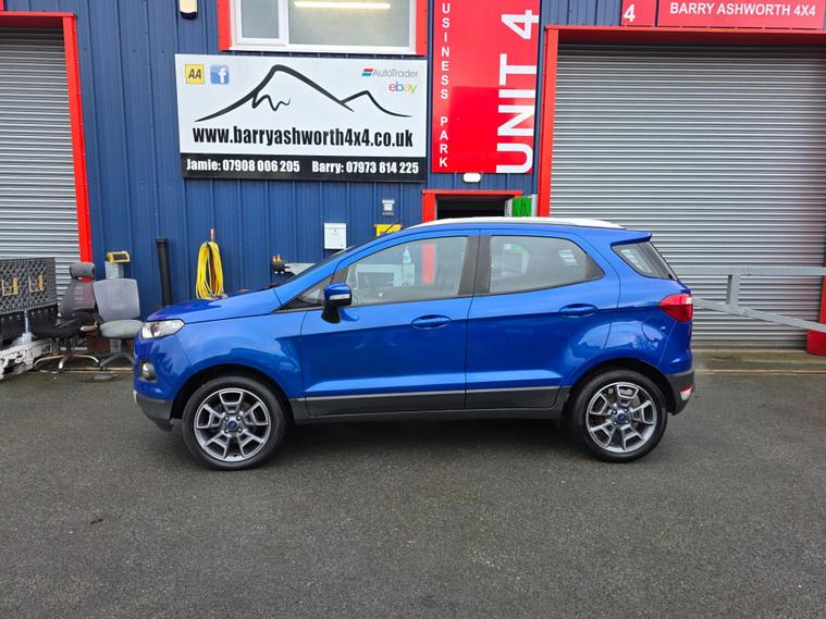 Here on offer is a 2 owner Ford Ecosport which has a manual gearbox and is fitted with the 1.5 Diesel engine and not the troublesome 1.0 petrol. Titanium spec is a great spec which includes leather interior, parking sensors and phone connectivity. Overall this vehicle is in great condition with only a few minor blemishes as expected with age. It drives exceptionally well with 2 keys present and some service history. Must be seen to appreciate condition and drive. ** ALL RETAIL VEHICLES SUPPLIED BY BARRY ASHWORTH 4X4 ARE HAND PICKED PRIMARILY FROM MAIN DEALERSHIPS AND COME FULLY SERVICED INCLUDING BRAKES, CAMBELT REPLACEMENT IF REQUIRED, A 12 MONTH MOT WITH 0 ADVISORIES AND A COMPLIMENTARY IN HOUSE WARRANTY. ALL OF THIS PREPARTION IS DONE AT POINT OF SALE SO OUR VEHICLES CANNOT BE TAKEN AWAY THE SAME DAY BUT WHEN YOU RECEIVE YOUR VEHICLE YOU KNOW ITS FRESHLY PREPARED FOR A SUCCESSFUL & STRESS FREE MOTORING EXPERIENCE! WE ARE A FAMILY RUN BUSINESS WHICH HAS OVER 50 YEARS EXPERIENCE IN THE MOTOR TRADE WITH 30YEARS SPENT AS A 4X4 SPECIALIST AND HAVE CUSTOMERS ALL OVER THE UK INCLUDING EXPORT CLIENTS ACCROSS THE WORLD. WE ARE HAPPY TO HAVE AN AFFILIATION WITH THE AA AS AN 'AA DEALER PROMISE DEALERSHIP' ALLOWING US TO PROVIDE A FREE 12 MONTHS BREAKDOWN COVER ON ALL VEHICLES & GREATER CONFIDENCE TO OUR CLIENTS AS A TRUSTED DEALERSHIP. ADDITIONALLY WE ARE ALSO A 'TRADING STANDARDS' CERTIFIED DEALERSHIP. WE OFFER PERSONAL NATIONWIDE DELIVERY INCLUDING EXPORT DELIVERY SO DONT LET DISTANCE PUT YOU OFF, FINANCE AVAILABLE, 100+ 5* VERIFIED REVIEWS (SEE TESTIMONIAL TAB ON WEBSITE), MORE VEHICLES AVAILABLE ON OUR WEBSITE **