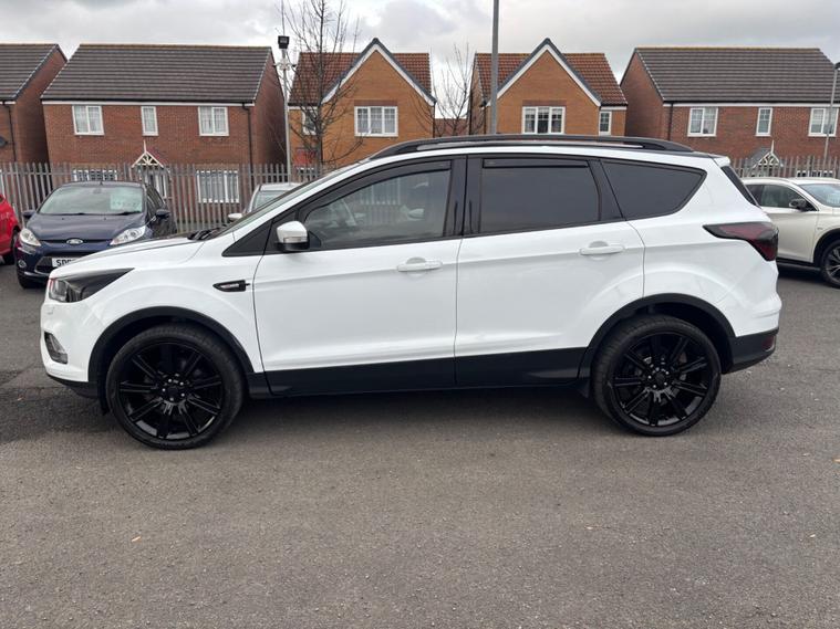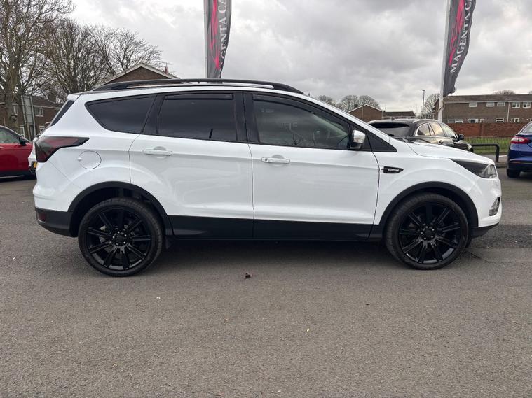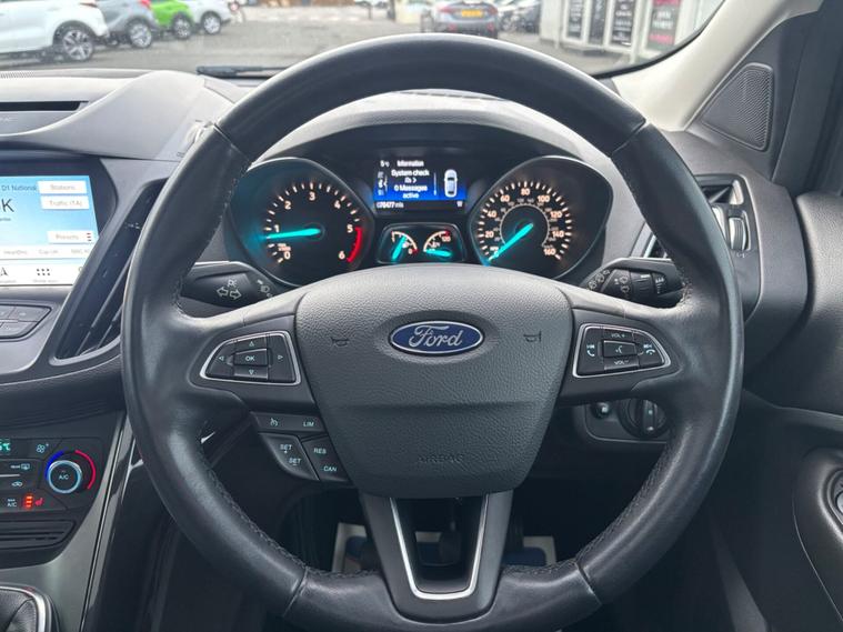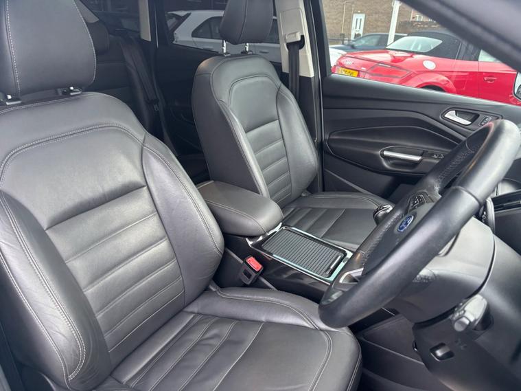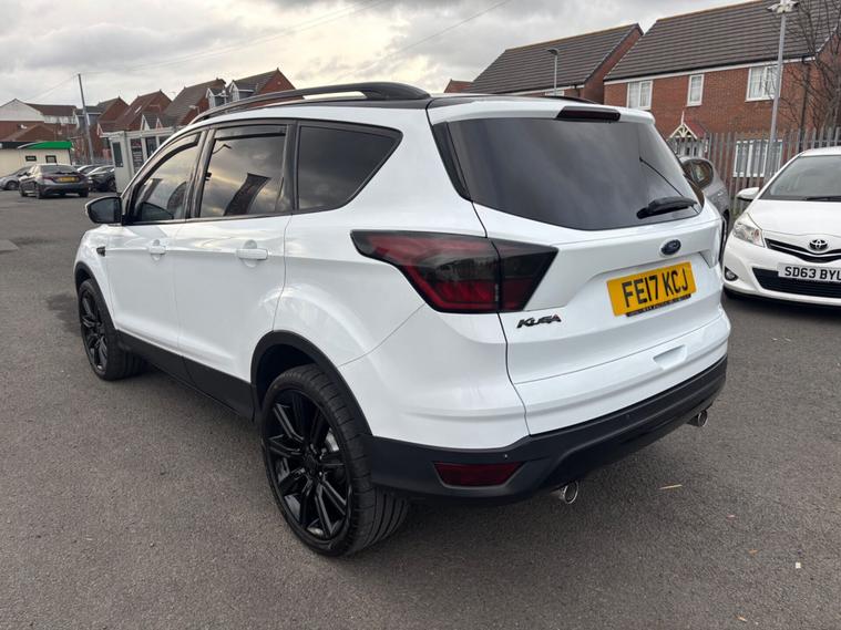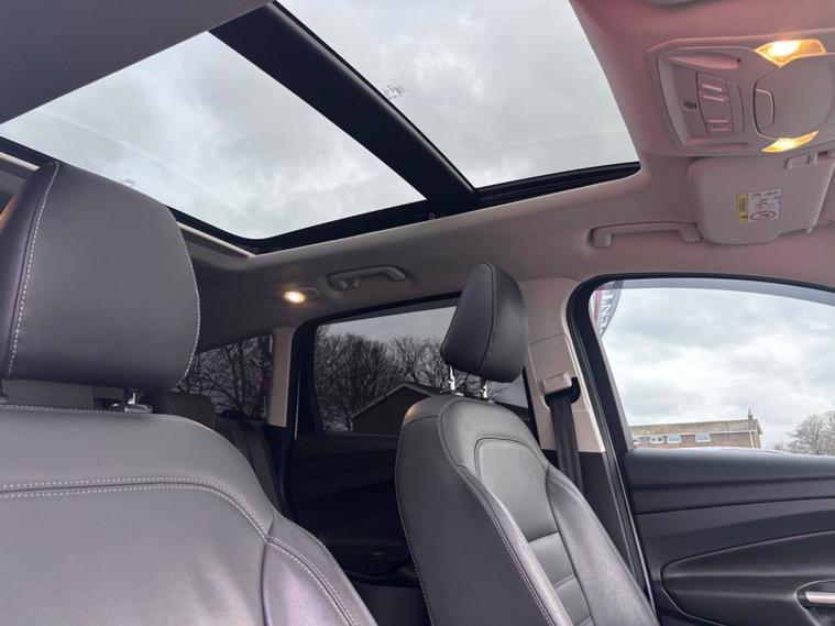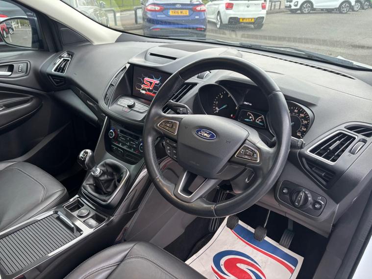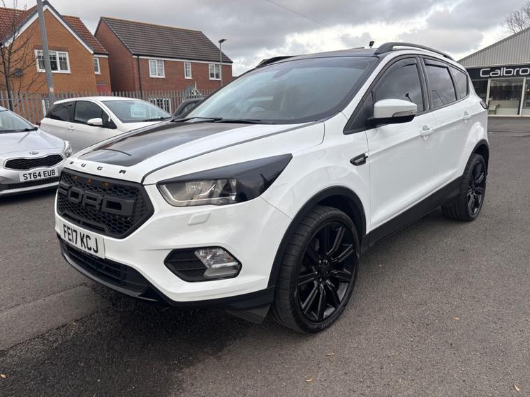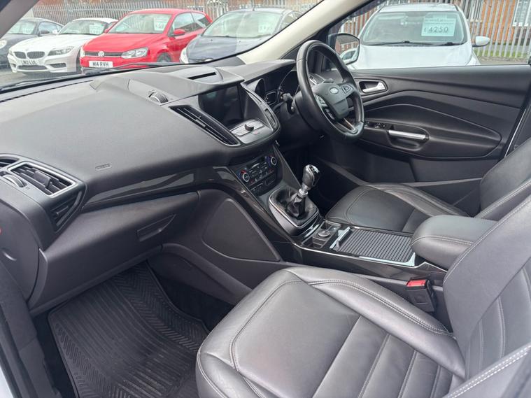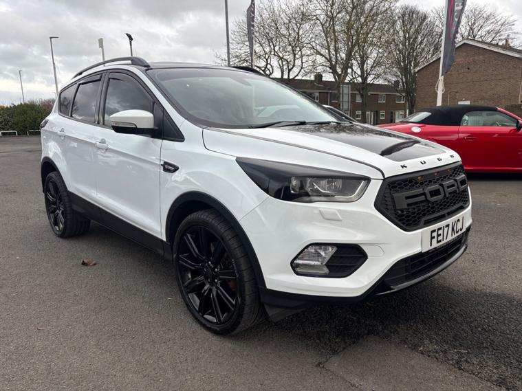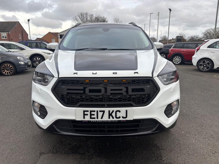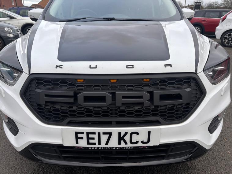 ***New Pirelli P Zero tyres all round***19inch alloys***Raptor front Grill*** This 2017 Ford Kuga TDCi Titanium X boasts a clear vehicle history, offering you peace of mind. This Four Wheel Drive model is equipped with a 2.0L Diesel engine and meets Euro 6 emissions standards. Inside, you'll find the comfort of heated driver and passenger seats, while the Titanium X trim adds Bi-Xenon headlights with dynamic bending adaptive beam shape for improved visibility. Enjoy the spacious feel provided by the power opening panoramic roof and the convenience of keyless entry and rear parking sensors with parking assistance. The Ford Kuga TDCi Titanium X stands out with its impressive fuel economy, achieving a highlight of 54 miles per gallon, which indicates it is more economical than many similar vehicles. Its low CO2 emissions further contribute to its appeal, suggesting a more environmentally conscious choice. This well appointed Kuga combines practicality with a range of desirable features for a comfortable and capable driving experience.