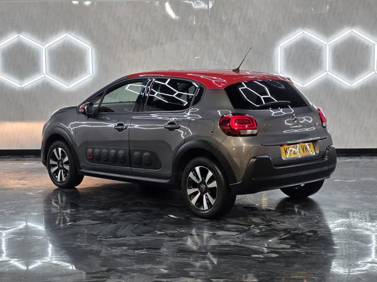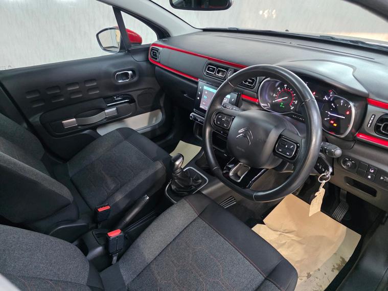 This stylish example comes with 2 keys, part service history and has been well cared for, offering a fantastic mix of practicality and modern design. Sitting on 17-inch Vector diamond-cut alloys with the Black Colour Pack, gloss black B-pillars, dark tinted rear windows and distinctive Airbump side panels, it has a bold and contemporary road presence. The signature 3D rear lights and LED headlights complete the sharp exterior look. Inside, the cabin is comfortable and well equipped with automatic air conditioning, leather steering wheel with gloss black detailing, Citroen Connect Nav touchscreen system, reversing camera and rear parking sensors. The 2/3 – 1/3 split folding rear bench makes it practical for everyday use, while cruise control with speed limiter, lane departure warning and the Tech & Safety packs provide added convenience and reassurance on the road. Safety is a strong point too, with multiple airbags, ESP stability control, hill start assist, ISOFIX mounting points, emergency braking alert systems and automatic door locking while in motion. A great all-round hatchback that offers distinctive styling, useful technology and low running costs in one smart package.