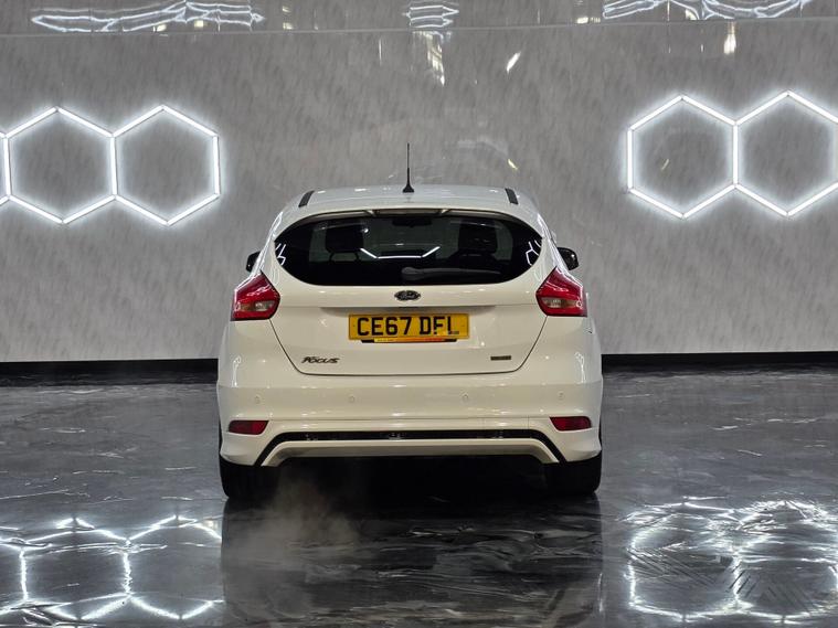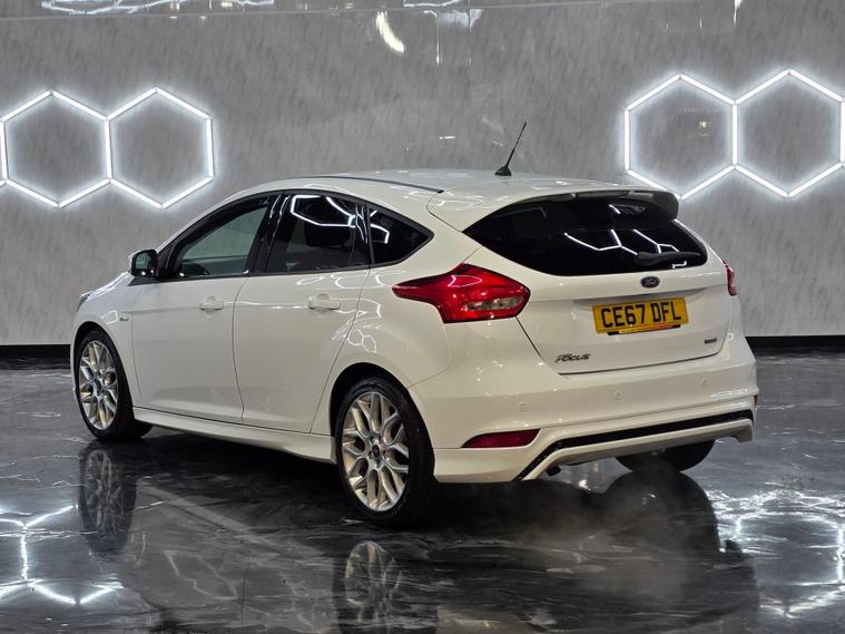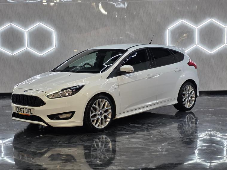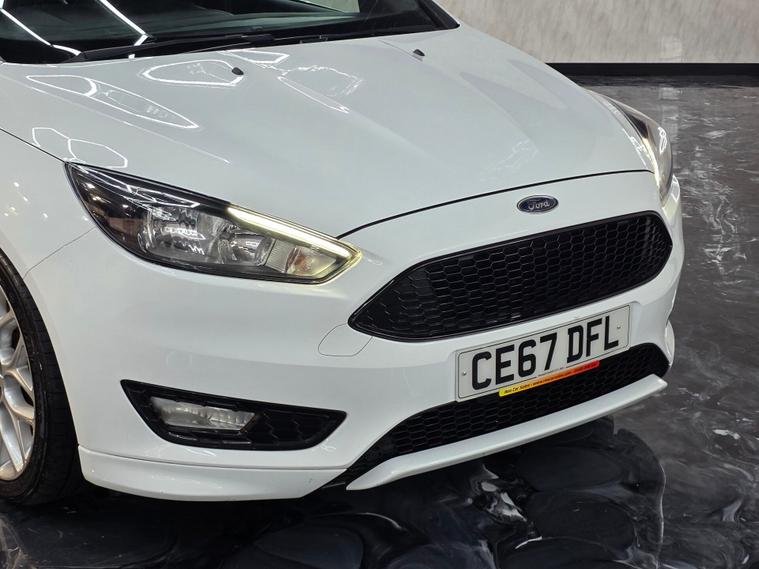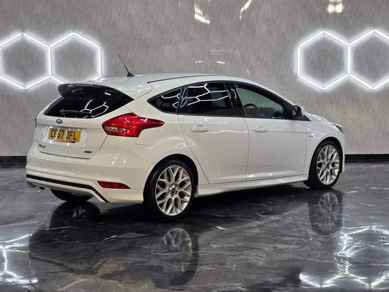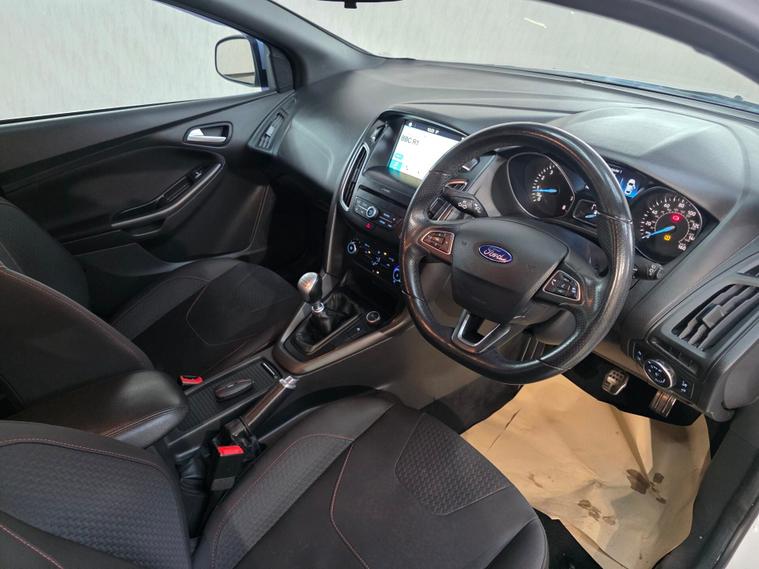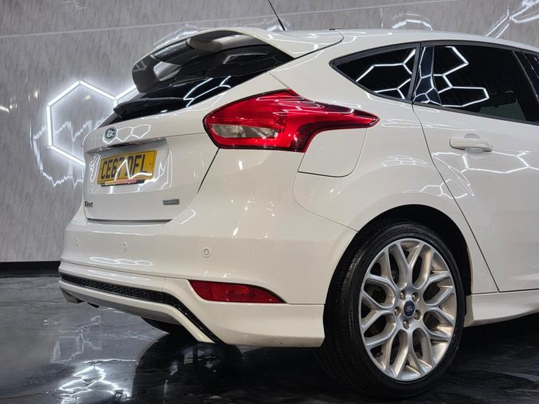 Supplied with 2 keys and a fantastic service history, this ST-Line model offers sporty styling, sharp handling and great everyday usability. Sitting on 17-inch Rock Metallic alloy wheels, finished with gloss black honeycomb grilles, black exterior trim detailing and a large body-coloured rear spoiler, it has a proper aggressive road presence. Inside, it continues the sporty theme with sports style seats, leather-trimmed steering wheel and gear knob, stainless steel ST-Line scuff plates and black woven headliner. The SYNC3 system with 8-inch touchscreen, DAB radio and satellite navigation keeps you fully connected, while keyless start and the Quickclear heated front windscreen add everyday convenience. On the road, the sports suspension, torque vectoring control and independent rear suspension give it confident, responsive handling. Safety is covered too, with ESP, traction control, Intelligent Protection System and a Thatcham Category 1 alarm for peace of mind. A stylish, well-maintained hot-hatch inspired model that looks the part and drives even better — perfect for someone wanting something a bit more exciting than your average hatchback.