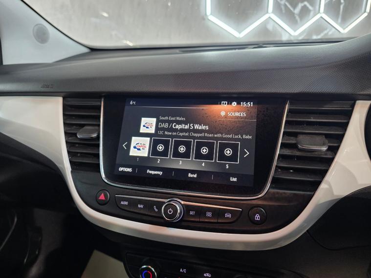 Supplied with 2 keys, this Vauxhall Crossland X offers stylish design, practicality and great everyday usability. Sitting on 17-inch diamond-cut Titan multi-spoke alloy wheels, complemented by the Diamond Black roof and door mirrors, chrome exterior detailing and protective skid plates, it has a modern SUV look that stands out on the road. Inside, the cabin is designed for comfort and convenience with comfort front seats, air conditioning, leather-covered steering wheel and stylish white fascia inserts. The Navi 5.0 IntelliLink touchscreen navigation and infotainment system, along with Bluetooth connectivity, Vauxhall Connect and a six-speaker audio system, keeps you fully connected on every journey. Practical touches such as electric windows front and rear, a multifunction trip computer and split-folding rear seats make it a great everyday family car. On the road, the Crossland X provides a smooth and confident drive thanks to speed-sensitive power assisted steering, cruise control with speed limiter and hill start assist. Safety is well covered too, with LED headlights, front camera system, lane and stability systems, traction control, multiple airbags and ISOFIX child seat mounts, giving added peace of mind for driver and passengers alike. A smart, practical and well-equipped compact SUV that blends comfort, technology and efficiency — perfect for everyday driving and family life.