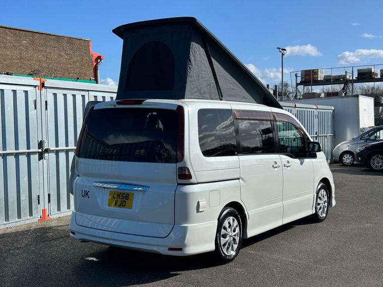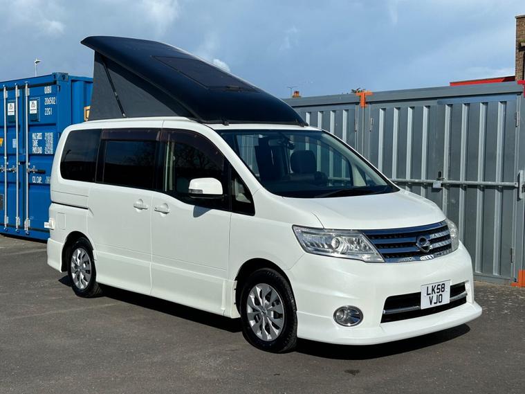 2008 (58) Nissan Serena 2.0 Automatic Campervan – Pop-Top – Air Conditioning – Pearl White Graham Marsh Car Sales Ltd are delighted to offer this superb 2008 (58) Nissan Serena 2.0 Automatic Campervan, finished in beautiful pearl white. A compact and versatile camper that’s easy to drive, making it perfect for weekends away, road trips, and camping adventures. This well-equipped camper conversion provides comfortable sleeping and practical facilities, ideal for couples or small families. Key Features Include: 2.0 Petrol Automatic Air Conditioning Pop-top roof for extra headroom and sleeping space Rock ‘n’ Roll bed Captain’s chair seating Twin remote sliding rear doors Electric windows Power steering Fitted sink and cooker 12V leisure battery 240V campsite hook-up 240V socket A great compact campervan that is easy to drive and park, offering everything needed for comfortable touring and camping. ? Viewing welcome at Graham Marsh Car Sales Ltd