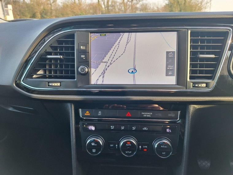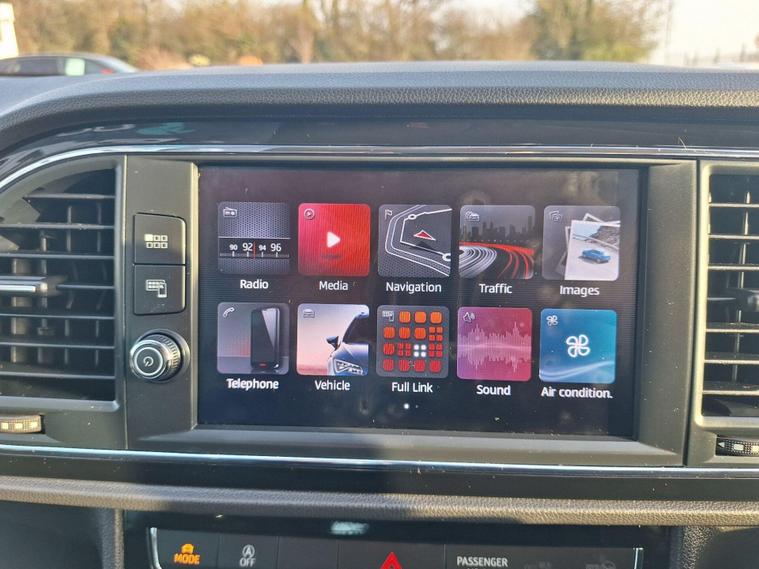 - Steering Wheel - Flat-Bottomed Perforated Leather with Red Stitching and FR Logo