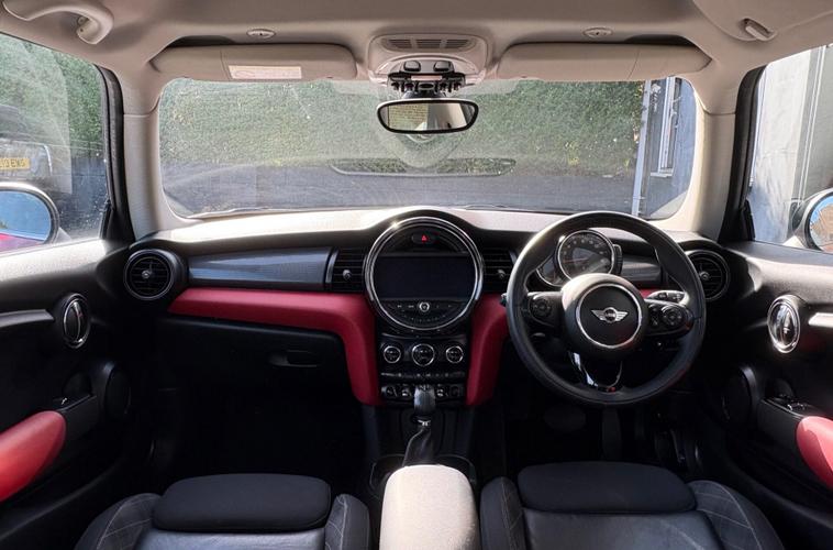 A frequently requested automatic Mini Hatch Cooper 1.5 3 door with the Chili and Media XL packs and further desirable options. Offered with eleven Mini dealer service workshop visits recorded and one former keeper shown on the V5 registration document. Finished in Blazing Red Metallic with Jet Black roof and mirror caps matched with Carbon Diamond Half Leather upholstery. Factory specified optional extras include: Chili pack, Media pack XL - Mini Professional Satellite Navigation - Mini Connected XL, Enhanced bluetooth mobile preparation, DAB Visual Boost tuner, 16'' Victory spoke design alloy wheels in gloss black, Sun protection rear glass, Front central armrest, Glowing red interior colour line, Indicators in white. Standard features include: Three spoke sports leather multi-function steering wheel, Cruise control with brake function, Speed Limiter, Remote audio controls, Tyre pressure monitioring system, Sports seats, Half leather upholstery, Alarm, Immobiliser, Front seats with height and lumbar adjustment, Isofix, Storage pack, Mini Excitement pack, Mini Driving Modes, Rain sensor wipers, Auto headlights, Dual zone auto climate control air conditioning, Multi-function trip computer, Ambient interior light pack, Electric windows, Electric mirrors, Heated mirrors and washer jets, Remote central locking, Bluetooth for phone and audio, Fog lights, Keyless push button start, Multiple airbags, Front seat passenger airbag isolation facility, ULEZ compliant. With its desirable automatic transmission, this Hatch Cooper is worth checking out! We operate by appointment only Monday - Saturday, please telephone or email us to arrange a time; do not arrive unannounced as we might be closed and will not be able to assist you.
