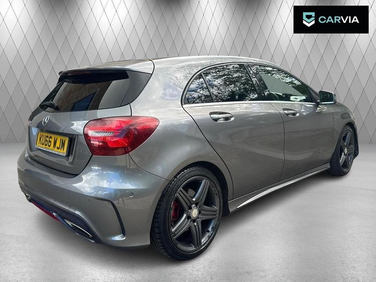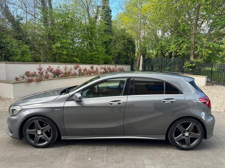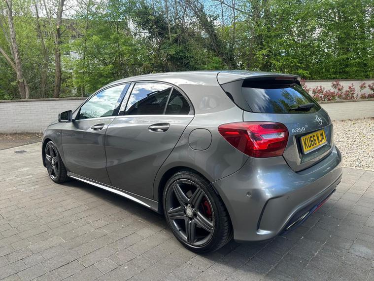 Mercedes-Benz A250 AMG Sport – 2016 – Full Mercedes Service History A superb example of the ever-popular Mercedes-Benz A250 AMG Sport, combining sharp styling, premium comfort and impressive performance from its responsive turbocharged petrol engine. Finished in a sleek and timeless colour combination, this A250 AMG presents exceptionally well for its age and mileage and benefits from a full Mercedes-Benz service history with 8 stamps, giving outstanding provenance and evidence of careful ownership. The A250 offers the perfect balance of everyday practicality and genuine driving enjoyment, with strong acceleration, smooth automatic transmission and precise handling, all wrapped in the aggressive AMG styling package. Key Features Include: Full Mercedes-Benz Service History – 8 Stamps AMG Styling Package Diamond Cut Alloy Wheels Satellite Navigation Reverse Camera / Parking Sensors Heated Sports Seats Multifunction Flat Bottom Steering Wheel Bluetooth Audio & Handsfree Cruise Control LED Running Lights Dual Zone Climate Control Privacy Glass Premium Interior Finish This car drives exactly as it should, with excellent road manners and a tight, refined feel throughout. Clearly maintained to a very high standard and ready for its next owner. A fantastic opportunity to own a high-specification hot hatch with pedigree, performance and full main dealer history. Finance Available | Part Exchange Welcome | Nationwide Delivery Available Please get in touch to arrange a viewing or test drive.