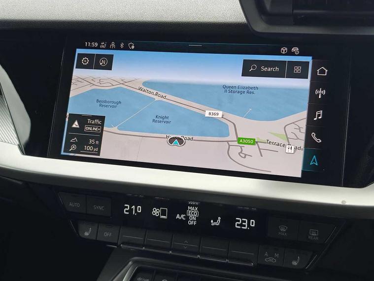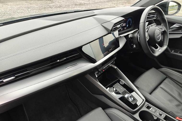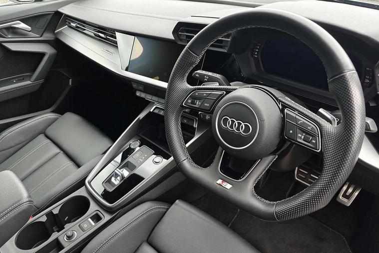 - 3-spoke leather multi-function flat bottom steering wheel and shift paddles (note: cars build from 27.11.23 will have chrome paddles and not black as shown in the image)