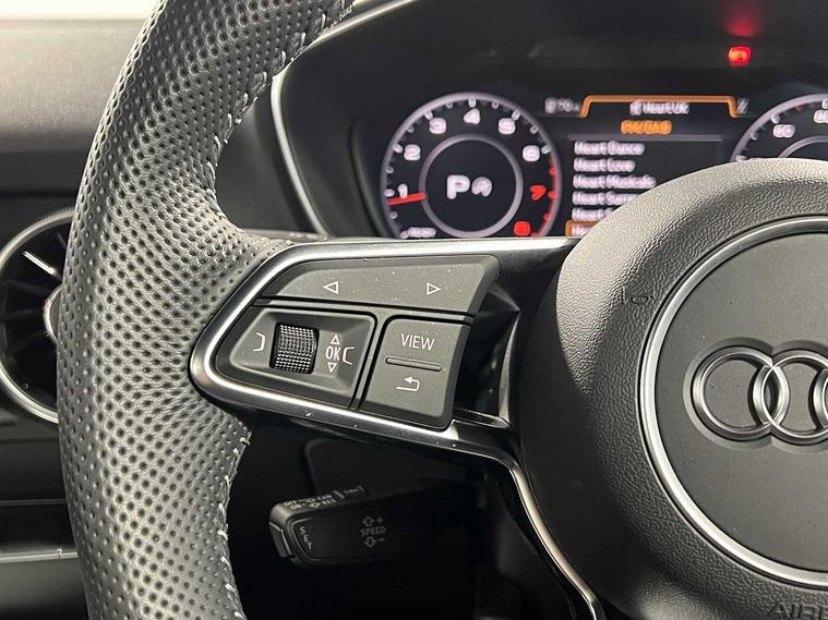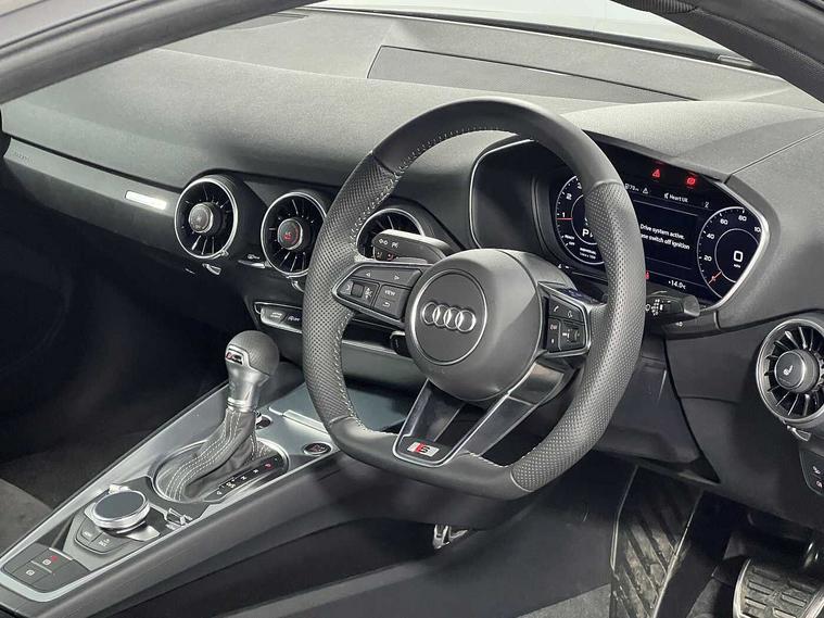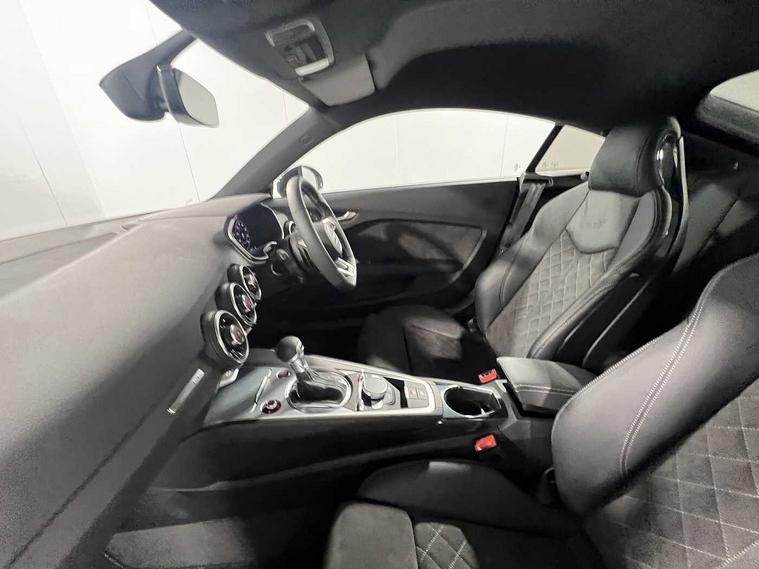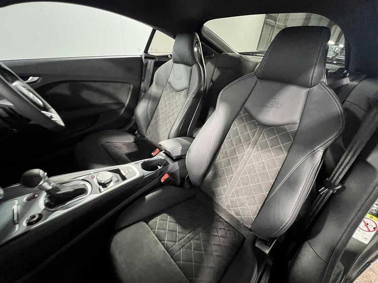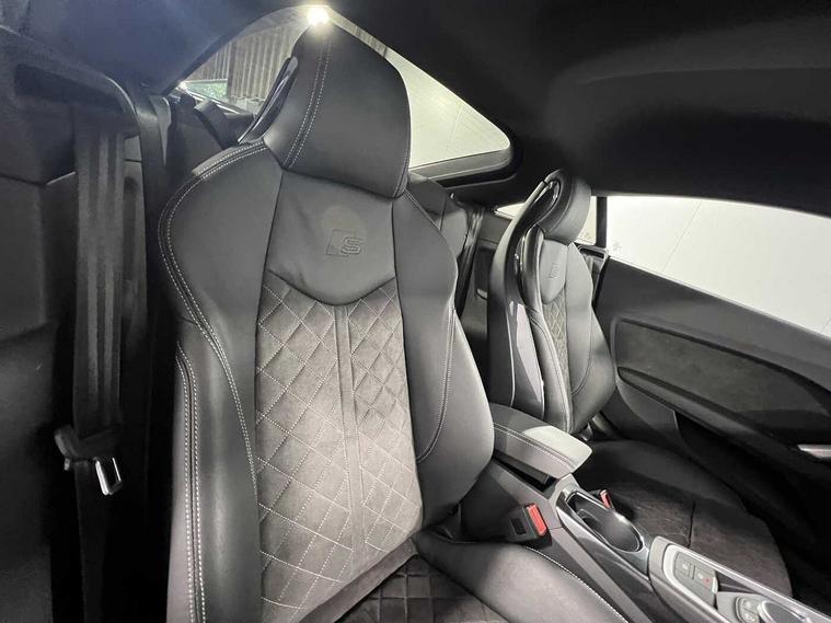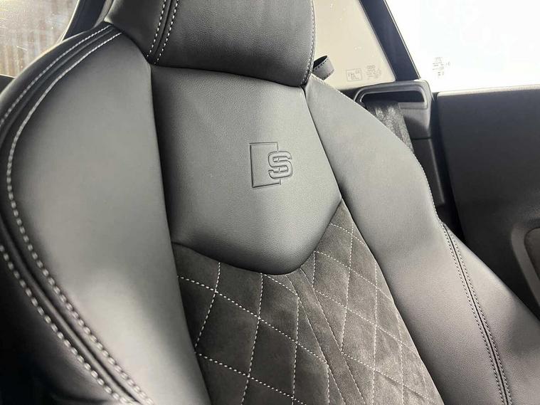 - Alcantara/leather with embossed S line or S logo on the front seat backrests
