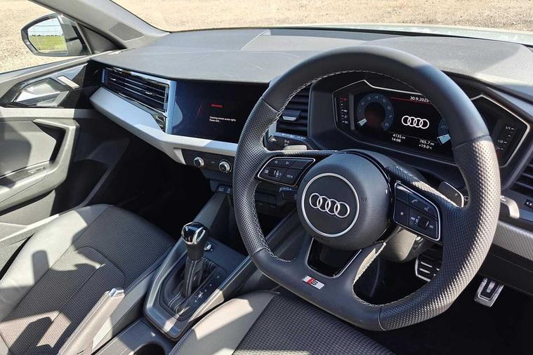- Flat-bottomed 3-spoke multifunction steering wheel including paddleshift