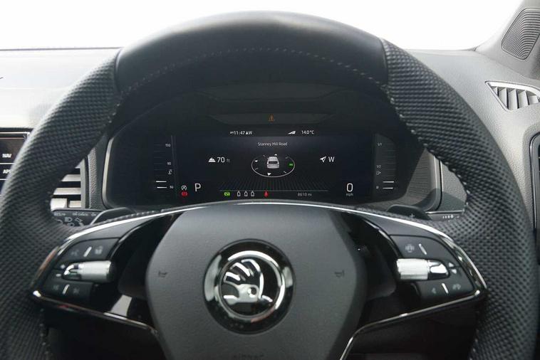 - 3 spoke leather sports multifunction steering wheel and silver stitching with gear shift paddles