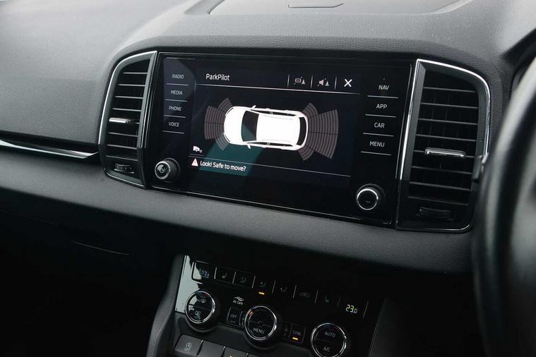 - Front assist radar scanning of the space in front of the car with automatic braking