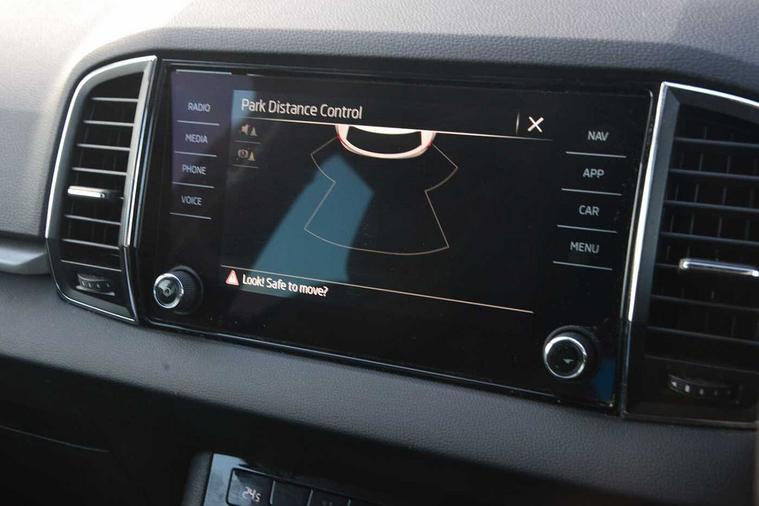 - Front assist radar scanning of the space in front of the car with automatic braking