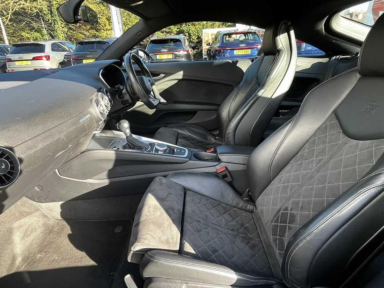 - Alcantara/leather with embossed S line or S logo on the front seat backrests