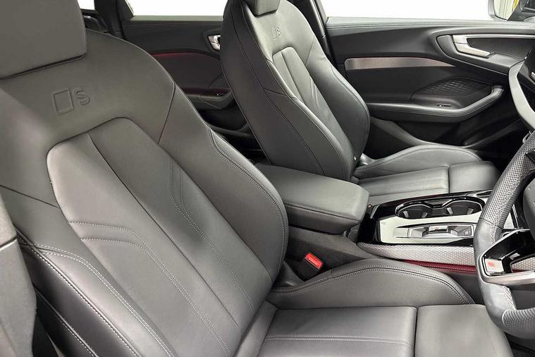- Front sport seats in twin leather with integrated headrest and S embossed logo