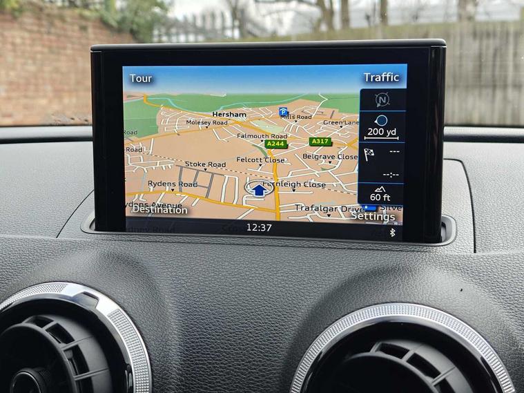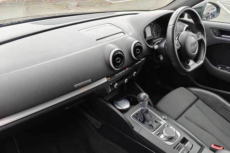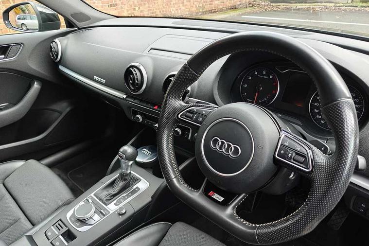 - Flat-bottomed S line 3-spoke leather multifunction steering wheel