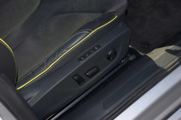 - 3-spoke black leather heated sports multifunction steering wheel with grey stitching and paddles for recuperation level selection