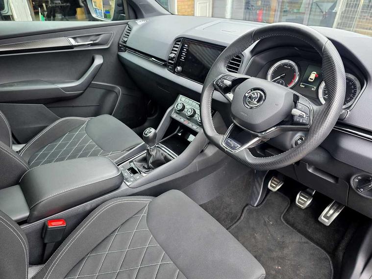 - Fabric sports seats with thermoflux and silver stitching