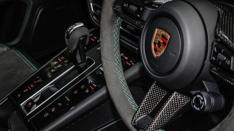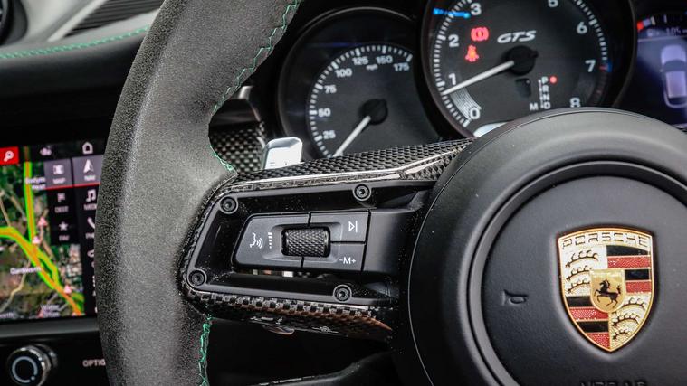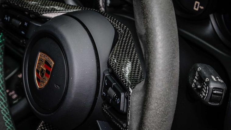 - Heated GT Sports steering wheel in Race-Tex with inlay in carbon (1XR)