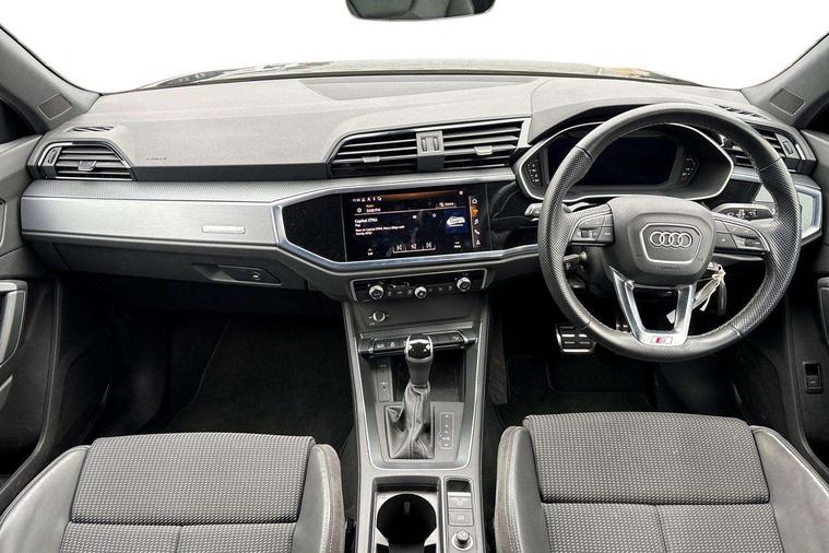 - 3-Spoke Leather Multi-Function Steering Wheel - S Badging and Grips in Perforated Leather with Contrast Stitching