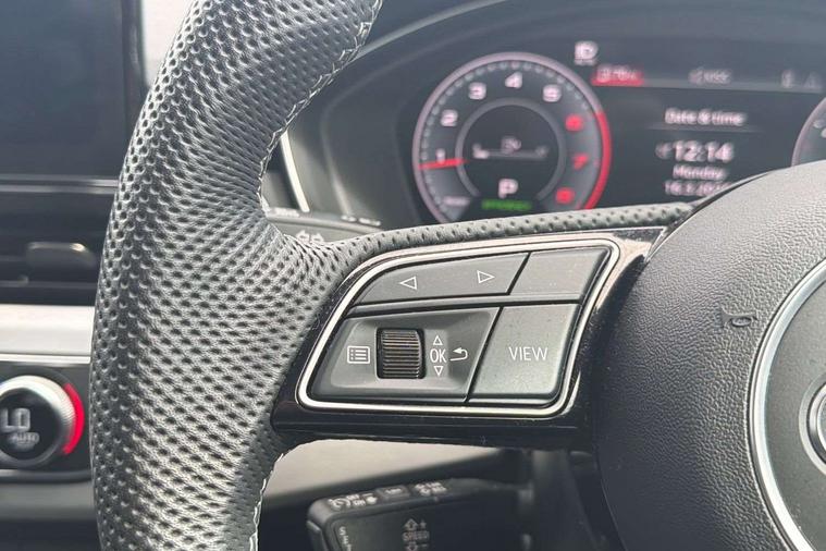 - 3-Spoke Leather High Multi-function Sport Steering Wheel with Grips in Perforated Leather with Paddles and S Badging