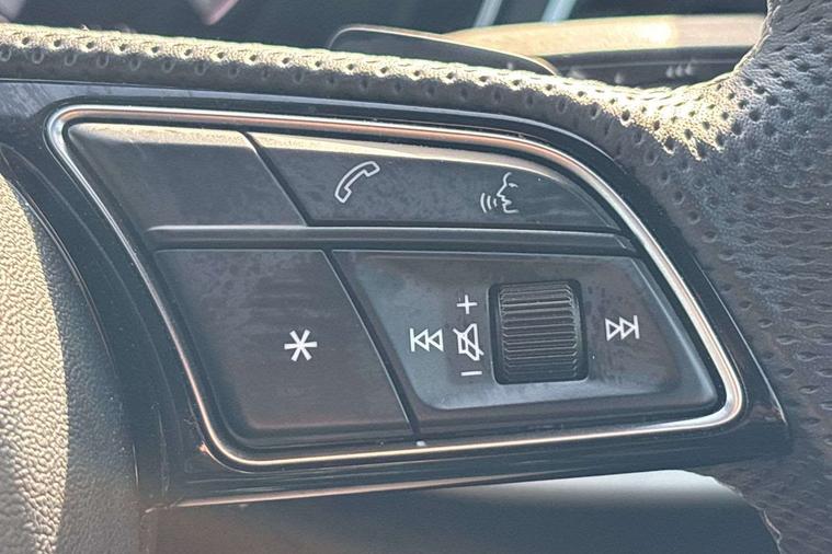 - 3-Spoke Leather High Multi-function Sport Steering Wheel with Grips in Perforated Leather with Paddles and S Badging