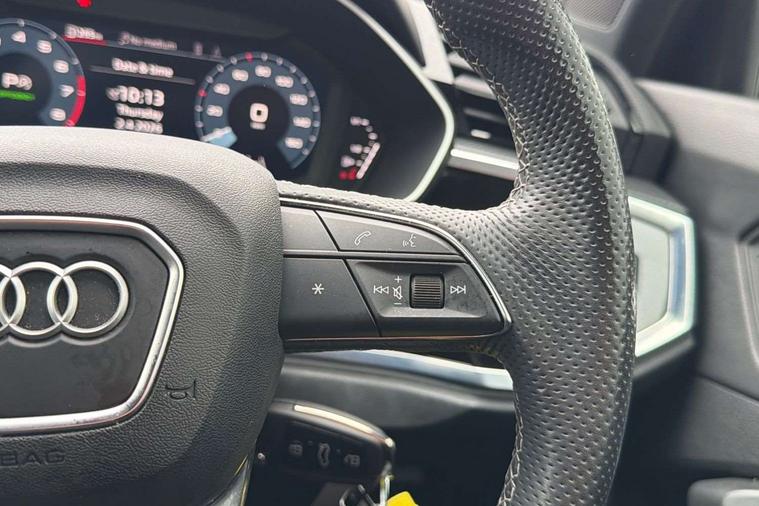 - 3-Spoke Leather Multi-Function Steering Wheel - S Badging and Grips in Perforated Leather with Contrast Stitching