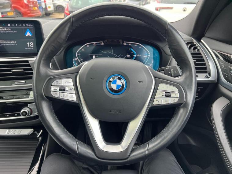 This 2021 BMW iX3 Premier Edition boasts an exceptionally low mileage of just 24, 000 miles, coupled with a service history, including a recent service in September 2025 at 24, 770 miles, and has had only one owner from new. As an electric vehicle, it offers a substantial battery total capacity of 80 kWh, providing a maximum range of 282 miles when new. This Premier Edition is equipped with notable features such as the BMW Live Cockpit Professional with Bluetooth, Driving Assistant Professional including Adaptive Cruise Control, and Enhanced Bluetooth with Wireless Phone Charging. Further enhancing the driving experience are Adaptive LED Headlights and front electric seats with driver memory. The BMW iX3 Premier Edition presents a compelling package for those seeking an electric SUV. Its impressive 282 mile maximum range at new highlights its capability for longer journeys, while the large boot space ensures practicality for everyday needs. Charging is convenient, with a full charge at home taking approximately 11 hours and 20 minutes using a 7kW charger, and a rapid charge to 80% achievable in just 32 minutes at a fast public charging station. This vehicle also comes with 12 months MOT provided on purchase, ensuring its roadworthiness. Good quality, reliable used cars for sale at an extremely fair price in Ambrosden in Oxfordshire.