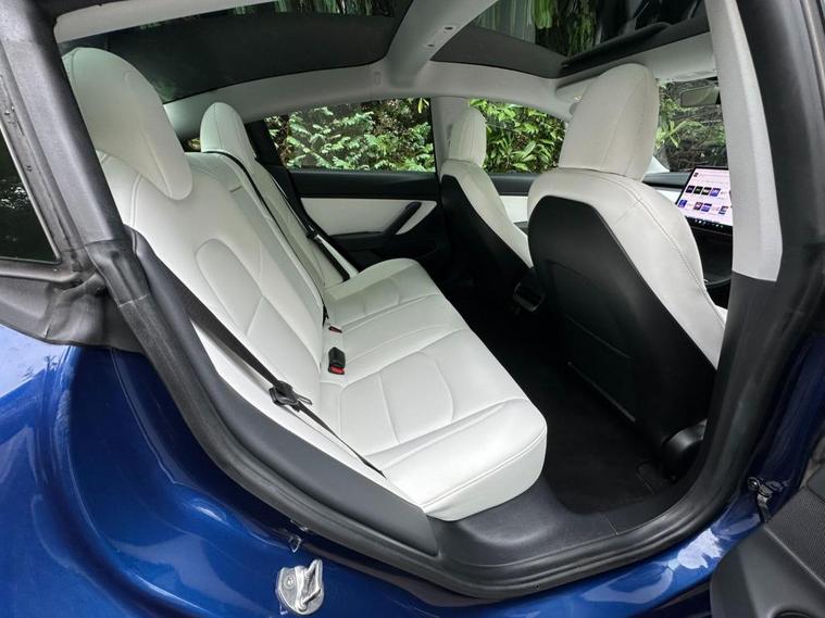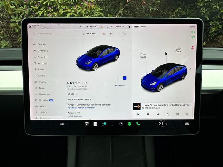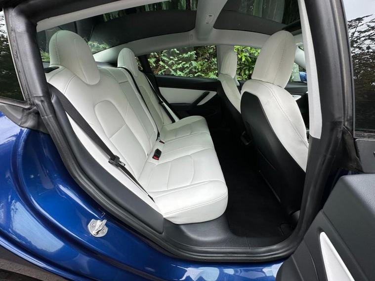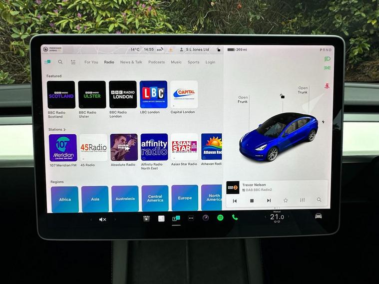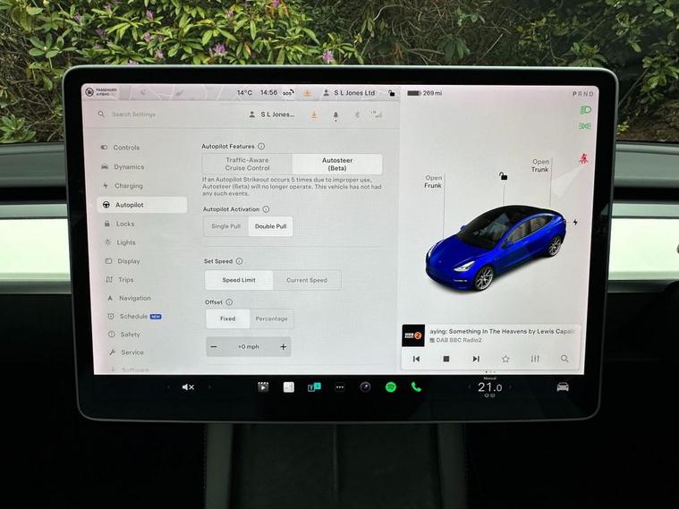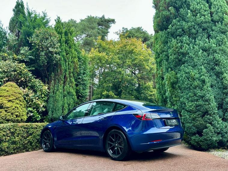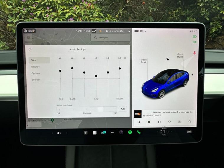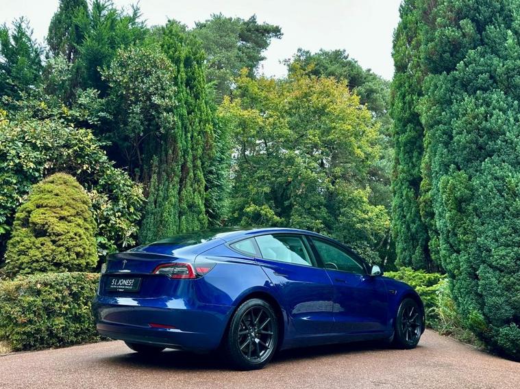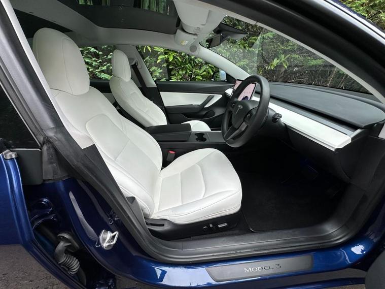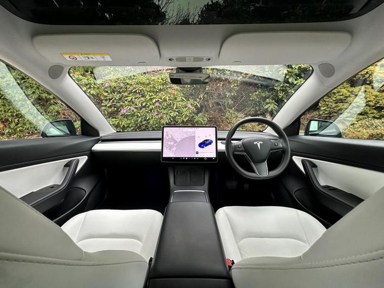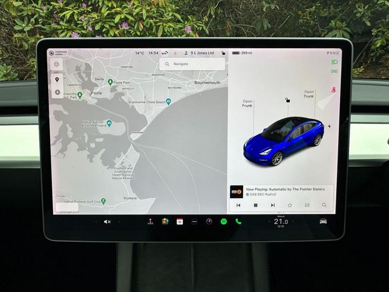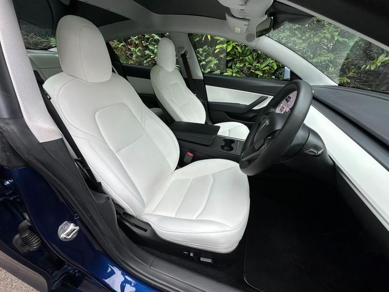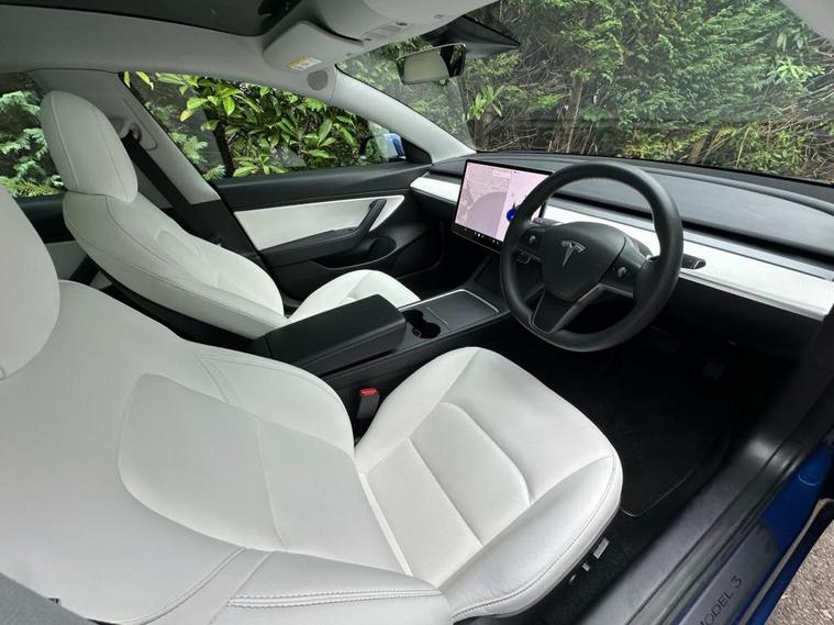 With a range of circa 300 miles the Model 3 boasts excellent fast charging and a 0-60 time of under 4.2 seconds with its Dual Motor All-Wheel Drive. The Long Range Model 3 is equipped with Teslas CCS fast charging for up to 250kW charging and as well as all of the safety features that Tesla are renowned for. Incredibly low maintenance and service requirements, minimal fuel cost to charge at home and full access to the fantastic Tesla Supercharging network. Finished in Deep Blue metallic paintwork with Gloss black 18in Aero wheels (other alloy wheels are available by separate negotiation). The Premium white interior includes, Panoramic glass roof, Premium Immersive Sound, Sub Zero Pack (heated front and rear seats), Centre console with storage and 4 USB ports with docking for 2 smartphones. If required you can purchase an acceleration boost for this example direct from Tesla improving its 0-60 mph time from 4.2 seconds to 3.7 seconds. Autopilot features enable the car to follow the car in front with adaptive cruise control and Autosteer will keep it in its lane. Full Self Driving is an option that can be purchased after sale direct from your Tesla app, and will enable auto parking, navigate on Autopilot, braking for traffic lights and auto lane change when indicating on Autopilot. The 15" touchscreen allows ease of use with the built in Spotify, Tunein radio, Netflix, YouTube and Web Browser features. Wireless phone charging for two phones is standard, as are USB-A and US