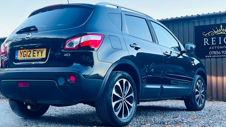 Reign Automotive Are Proud To Present This 2012 Metallic Black Nissan Qashqai N-Tec, 18" Diamond Cut Alloy Wheels, Front Fog Lights, Satin Grey Roof Rails, Privacy Glass. Service Records: Backed Up With Original Owners Manuals & Service Books, History Is As Follows: 10/04/2013 @ 14721, 19/03/2014 @ 26721, 28/09/2018 @ 61797, Reign Automotive Have Carried Out Full Service @ 106901 on 22/10/2025. Interior: Black Upholstery With White Stitching & Black Interior Trim, Satellite Navigation With Bluetooth Telephony & Auxiliary Media Playback, Panoramic Roof With Electronic Sun Blind, Multifunctional Steering Wheel With Source Media, Cruise Control, Trip Computer, Dual Zone Air Conditioning, Electric Windows, Electric Mirrors, Isofix Rear Bench. This Example Is Perfect For A Small Family Wanting An Affordable Vehicle, MoT 30/10/2026, Tax - 195, Sensible Mileage & Lovely Spec Being N-Tec, Vehicle Is Ready To Drive Away. Insurance Group * 18 * Reg* YG12 EYY* *Full Details : dealer's website * All of Our Vehicles Come With 3 Months Warranty First Or AA Warranty For Full Peace Of Mind (up to 36 Month Extension Available With Our Warranty Partners), **Unless Otherwise Stated Or Agreed ** All Vehicles At Point Of Sale Are Valeted Before Handover** Nationwide Delivery Available On All Vehicles @ 1.50 Per Mile (1 Way + Drivers Fee Of 40 ) Part Exchange welcome. Open Monday to Saturday, 830 - 5 ** Sundays Viewing By Appointment Only*** All Major Credit & Debit Cards Accept