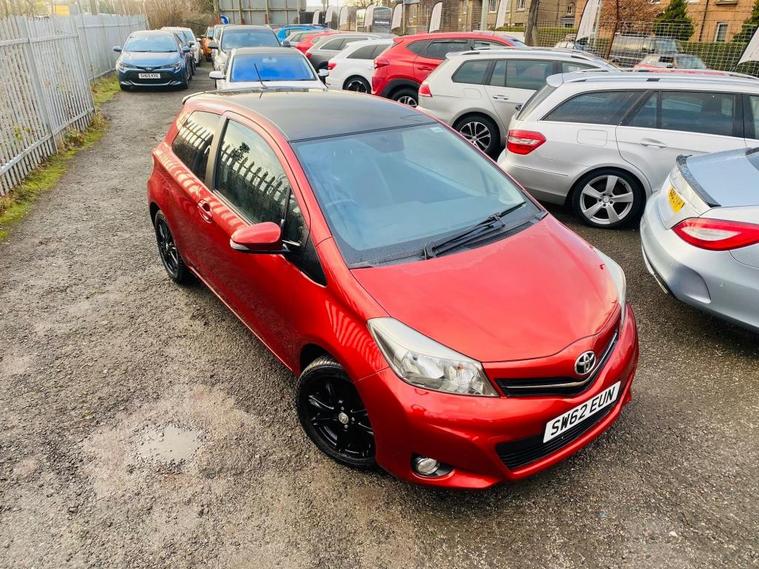 2012 TOYOTA YARIS SR 1.3 VVTI PETROL MANUAL. SR EDITION. 6 SPEED MANUAL GEARBOX. ULEZ FREE NO LOW EMISSION ZONE CHARGES. SAME LADY OWNER FOR THE LAST 5 YEARS. FULL SERVICE HISTORY. 10 STAMPS IN BOOK. WILL COME WITH FRESH SERVICE AT TIME OF SALE. MOT TILL JAN 25 BUT WILL COME WITH FRESH 1 YEAR MOT. 89800 MILES FROM NEW. TIMING CHAIN ENGINES GO FOREVER ITS TOYOTA AFTERALL. 2 X KEYS. REVERSE CAMERA. BLUETOOTH. MULTI CONTROLS ON STEERING WHEEL. ALLOY WHEELS. HALF LEATHER SEATS. 3 MONTHS WARRANTY. 12 MONTH AA BREAKDOWN COVER. Part Exchange Welcome. Video Viewings Available. 100% HPI Clear. * Under 5k cars come with 3 months or 30 Days warranty. Please refer to full car description. * **Every effort has been made to ensure the accuracy of the above information but errors may occur. Please check with a salesperson. Good quality, reliable used cars for sale at an extremely fair price in Edinburgh in West Lothian.