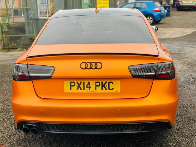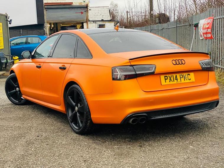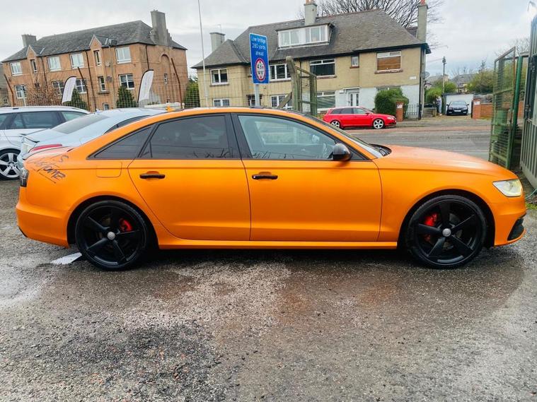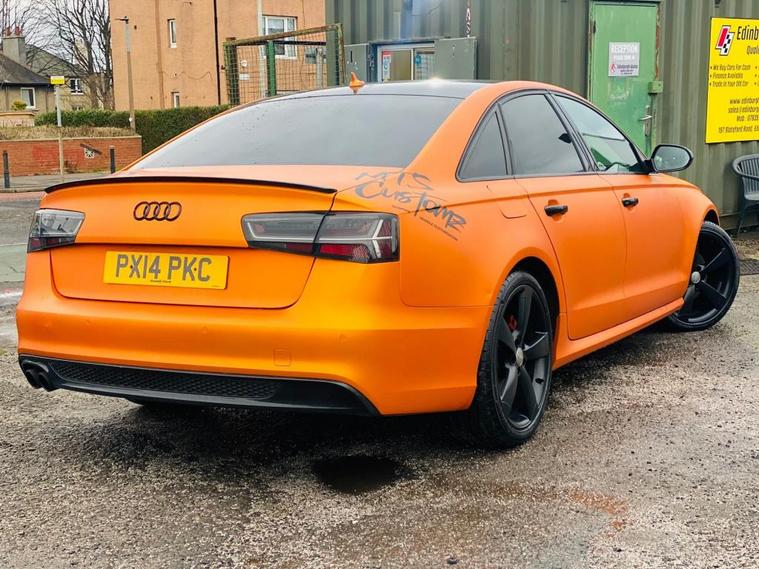 2014 AUDI A6 S-LINE BLACK EDITION DIESEL TURBO MANUAL. WRAPPED IN MATT ORANGE. ORIGINAL COLOUR OF CAR IS WHITE. 112K WARRANTED MILES FROM NEW. CLEAN MOT TILL 29TH SEPT 2026. VERY CLEAN MOT HISTORY RECORDS. ALMOST FULL SERVICE HISTORY. TIMING BELT AND WATER PUMP CHANGED AT 105K MILES. NEW CLUTCH AND FLYWHEEL FITTED AT 105K MILES. WILL COME WITH FRESH SERVICE. SAME OWNER FOR THE LAST 4 YEARS. 2 X KEYS. SAT NAV. MAP SD CARD. ROTAR BLACK ALLOY WHEELS. CAMELEON TINT. MATT BLACK WHEELS. AMBIENT LIGHTING. BOSE SOUND SYSTEM. PARKING SENSORS ALL ROUND. LIST GOES ON. Free 6 Months* National Comprehensive Warranty Included. Free 12 Months* AA National Breakdown Cover Included. Finance option available. Part Exchange Welcome. Nationwide Delivery Available. Video Viewings Available. 100% HPI Clear. *Under 5k cars come with 3 months warranty and breakdown cover. Good quality, reliable used cars for sale at an extremely fair price in Edinburgh in West Lothian.