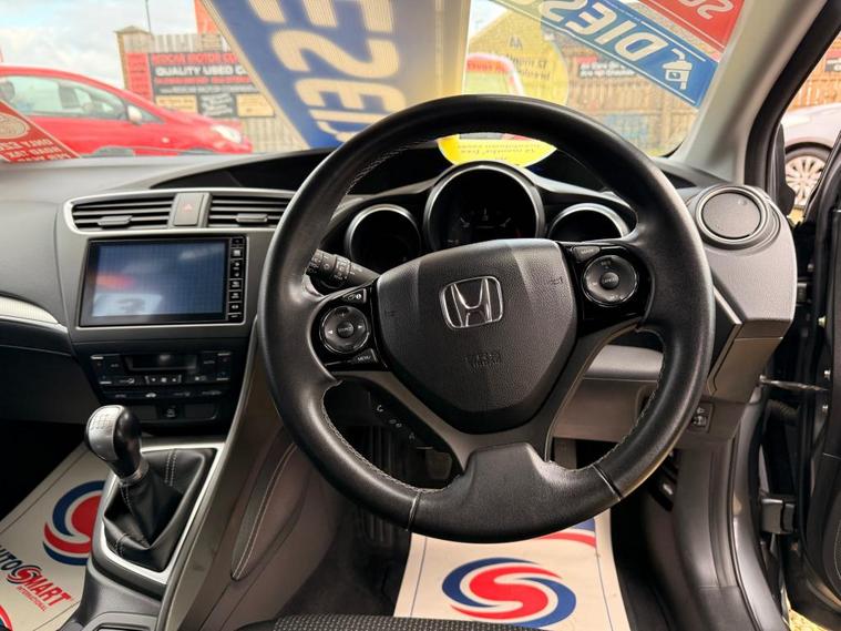 2015 65 plate Honda Civic 'i-DTEC SE Plus' 1.6 litre diesel 5 door hatchback finished in Sonic Grey Metallic. This vehicle has covered 79000 miles from new, by 2 former keepers and includes lots of history. This example also includes features such as a touch screen Bluetooth radio, digital dashboard, reverse camera, parking sensors, start stop, folding mirrors, dual zone climate control, cruise control and more! Tax for this vehicle is also just 20 per year! Purchase of this vehicle will include 12 months warranty, 12 months MOT, 12 months AA cover, a HPI check with printout and a full valet, all included at sale price of 6995 For more information, or to book a test drive, please call us on 01642906593, alternatively, if you wish to view our stock in person, our address is Tod point road, Warrenby, Redcar, TS105BQ. MOT included in the price. Good quality, reliable used cars for sale at an extremely fair price in Redcar in North Yorkshire.