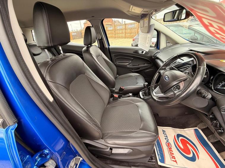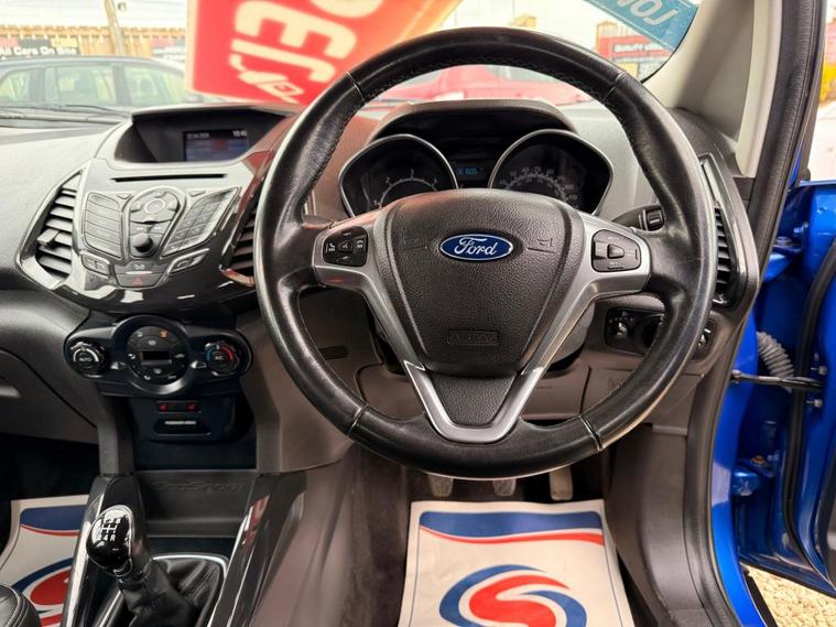 2017 Ford Ecosport 'Titanium TDCI' 1.5 litre diesel hatchback finished in Kinetic Blue Metallic. This vehicle has covered 61000 miles from new, by just 1 former keeper and includes full service history (FSH). This example is the high spec Titanium model, meaning it is packed with features such as keyless entry, keyless start, heated half leather seats, digital climate control, Bluetooth radio, automatic headlights, fog lights, cruise control, parking sensors and much more! Purchase of this vehicle will include 12 months warranty, 12 months MOT, 12 months AA cover, a HPI check with printout and a full valet, all included at sale price of just 6495 For more information, or to book a test drive, please call us on 01642906593, alternatively, if you wish to view our stock in person, our address is Tod point road, Warrenby, Redcar, TS105BQ. MOT included in the price. Good quality, reliable used cars for sale at an extremely fair price in Redcar in North Yorkshire.